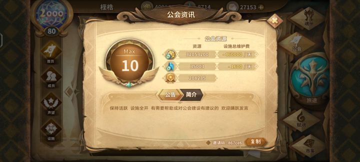 邀请码:867ce6公会唯一要求:一周上线一次贫穷但温馨的公会,欢迎各位