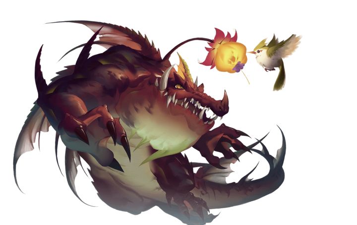 生活在枫湖畔的恶霸,自诩为湖畔霸王,个性蛮横无礼,为枫湖畔原生种蛙鳄。生性凶恶又奸诈,讲话超大声,觉得全枫湖畔居民都是蛙鳄的食物。会用头上的可爱植物进行伪装,诱捕其他居住在湖中的生物。领导着其他蛙鳄一同行动。和人鱼荷丝缇雅的关系很差,内心也极度憎恶老水豚扬波。因曾与扬波学习过隐匿气息的方法,再搭配上一对巨爪和利牙,成年卡努拉诱杀猎物的动作越发成熟。技能资料1消技能花苞诱敌,获得2层灵巧,敌方