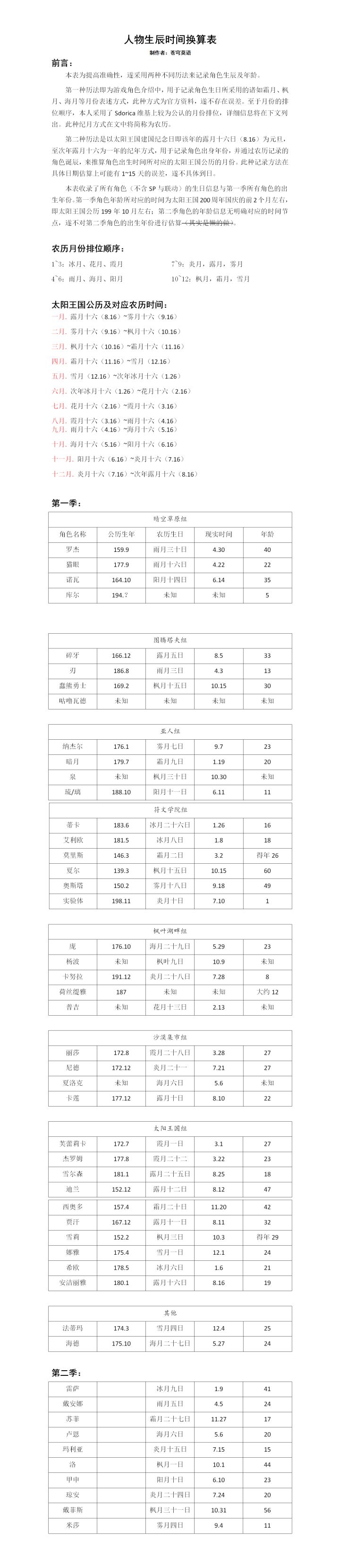 时间轴及人物年龄参考