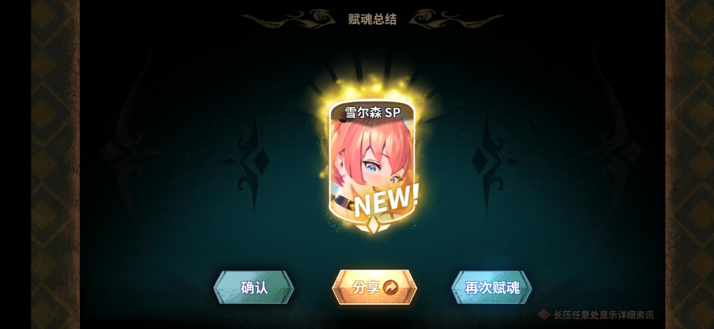 刚开的号,拿5张绿票出的雪尔森,听说还挺强的😊