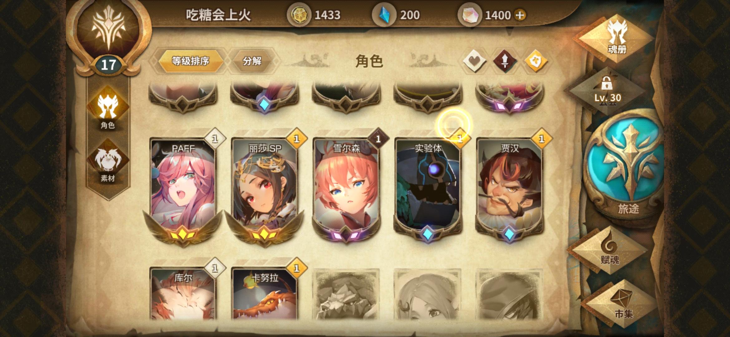 又捞了不少角色重复了个苏菲,希欧快金了,希望下次池子能抽到剩下的欧证