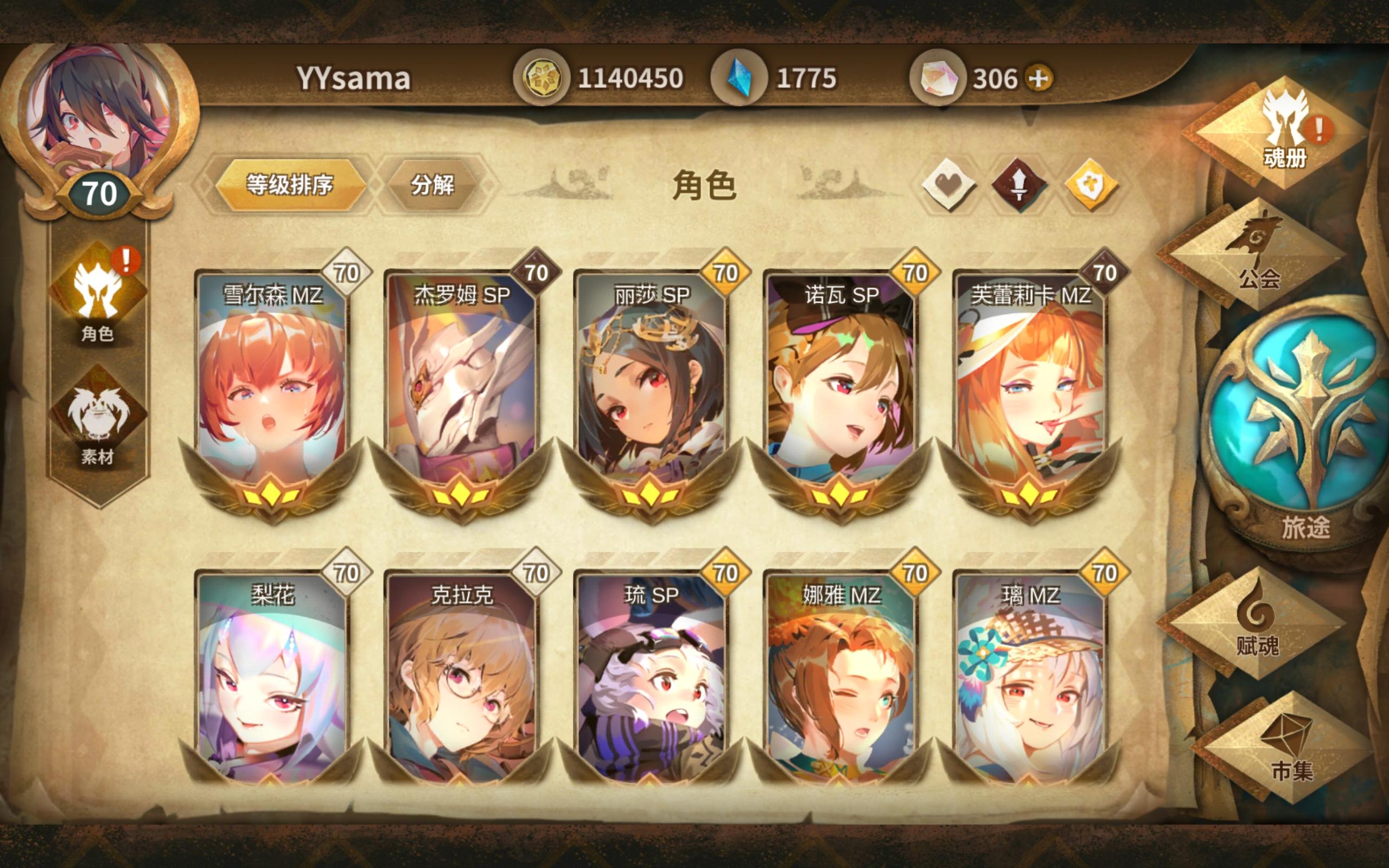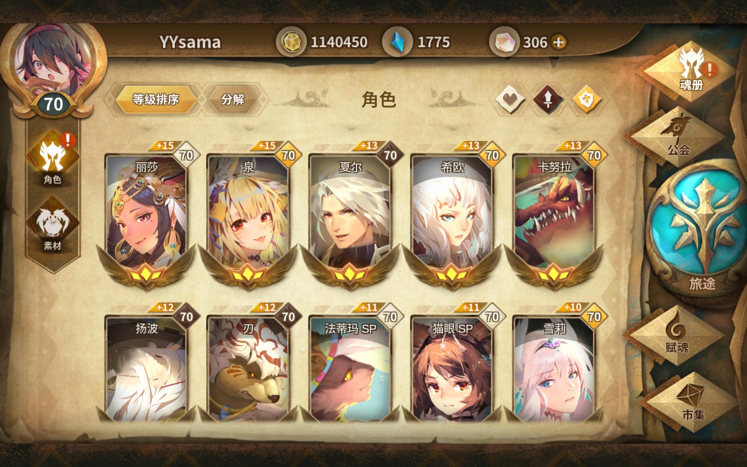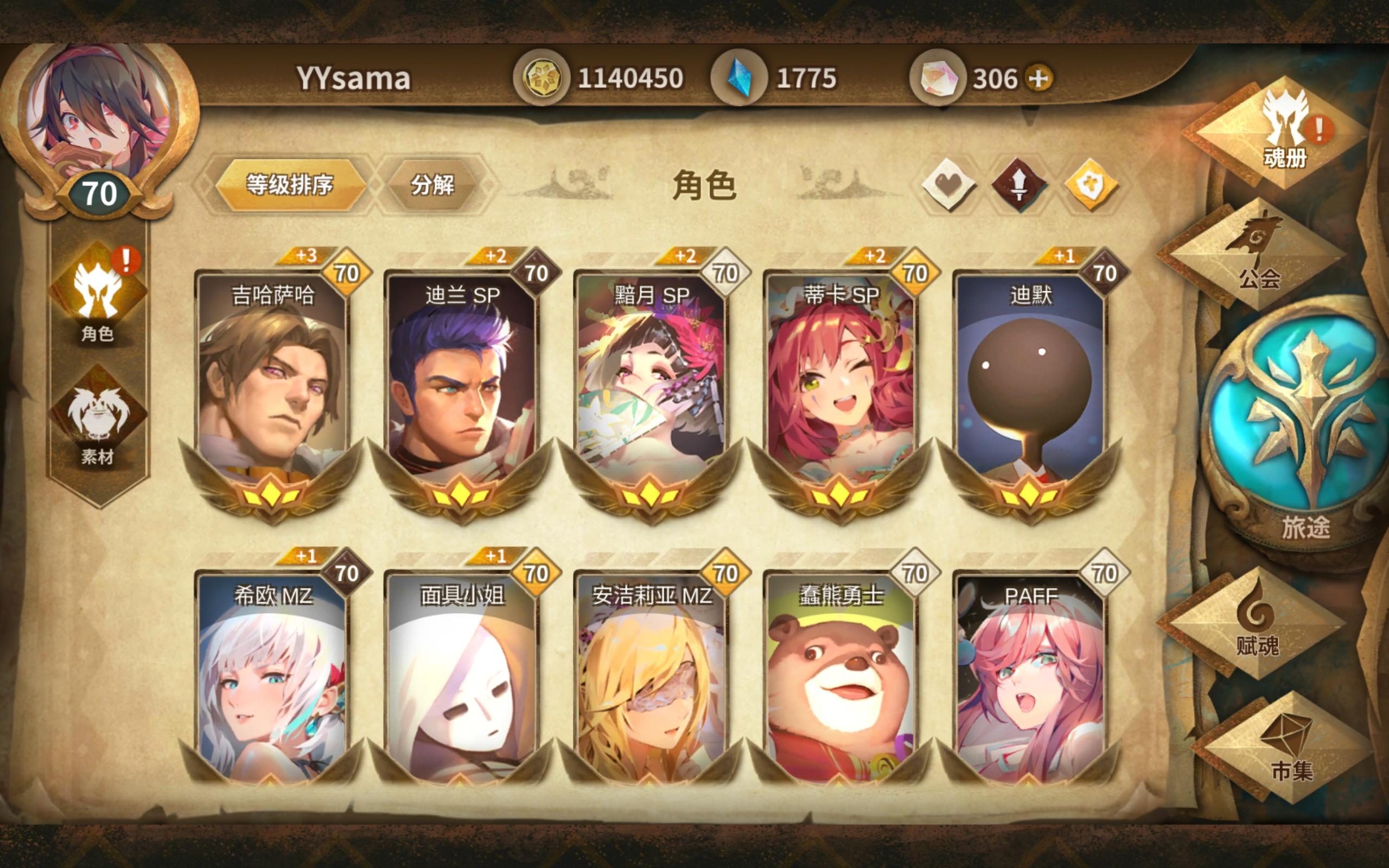 玩了大概两年了,看着我这么多金,其实我没充多少钱,除了少部分抽到的初始金,剩下大多数都是慢慢存碎片升起来的,有角色书的大部分也拿到了(很可惜圣诞虎活动那会很忙,没有拿到圣诞虎角色书)