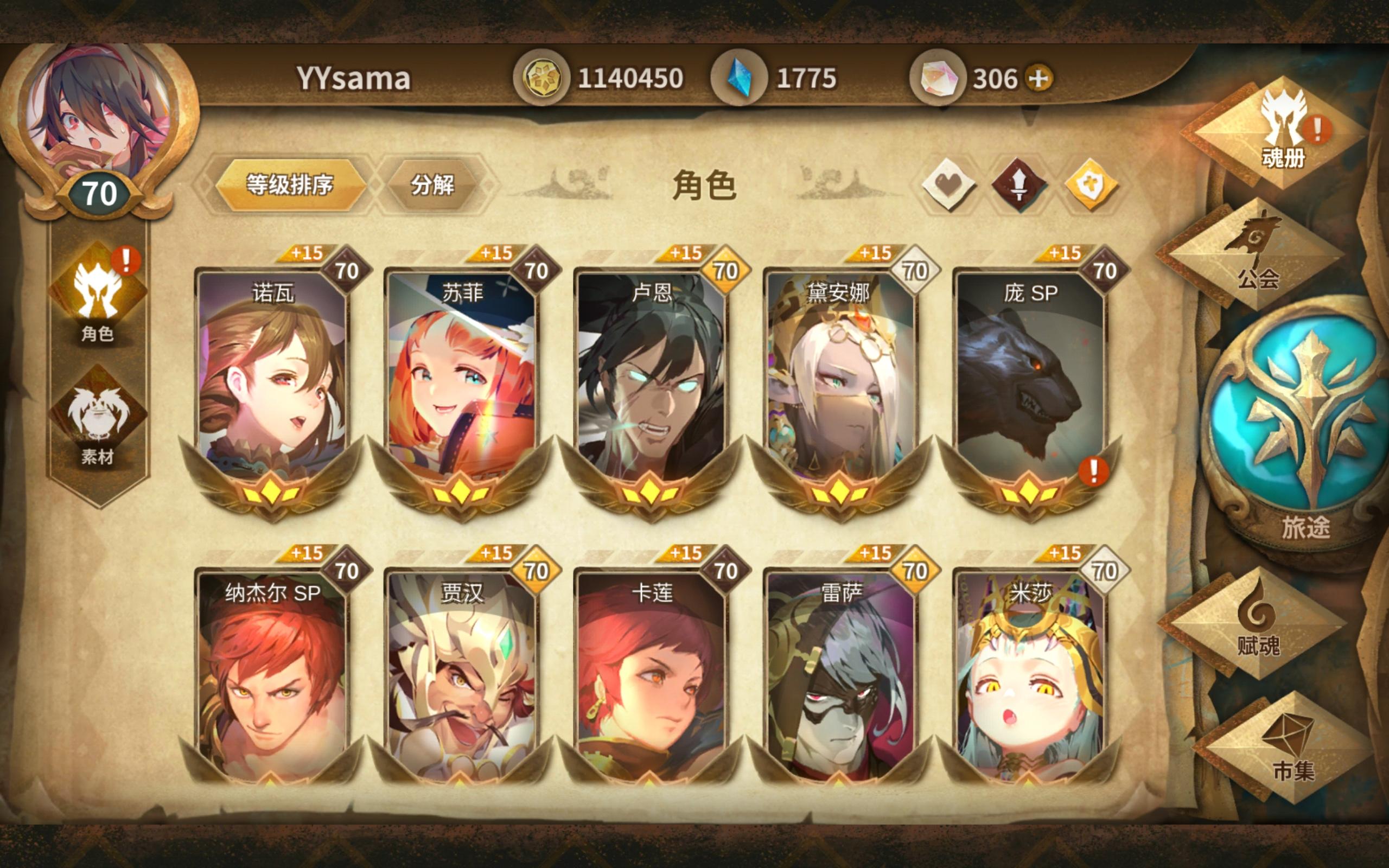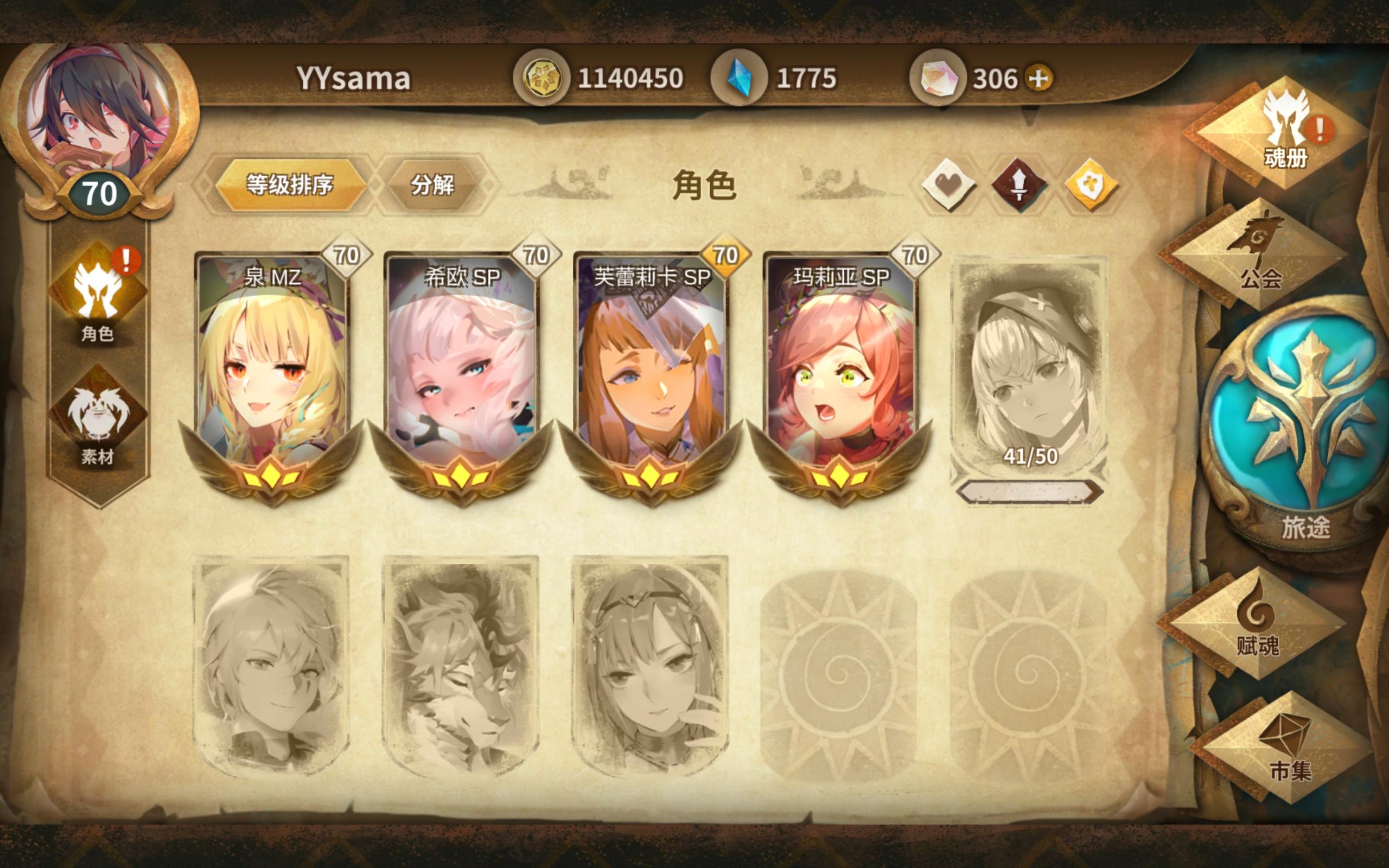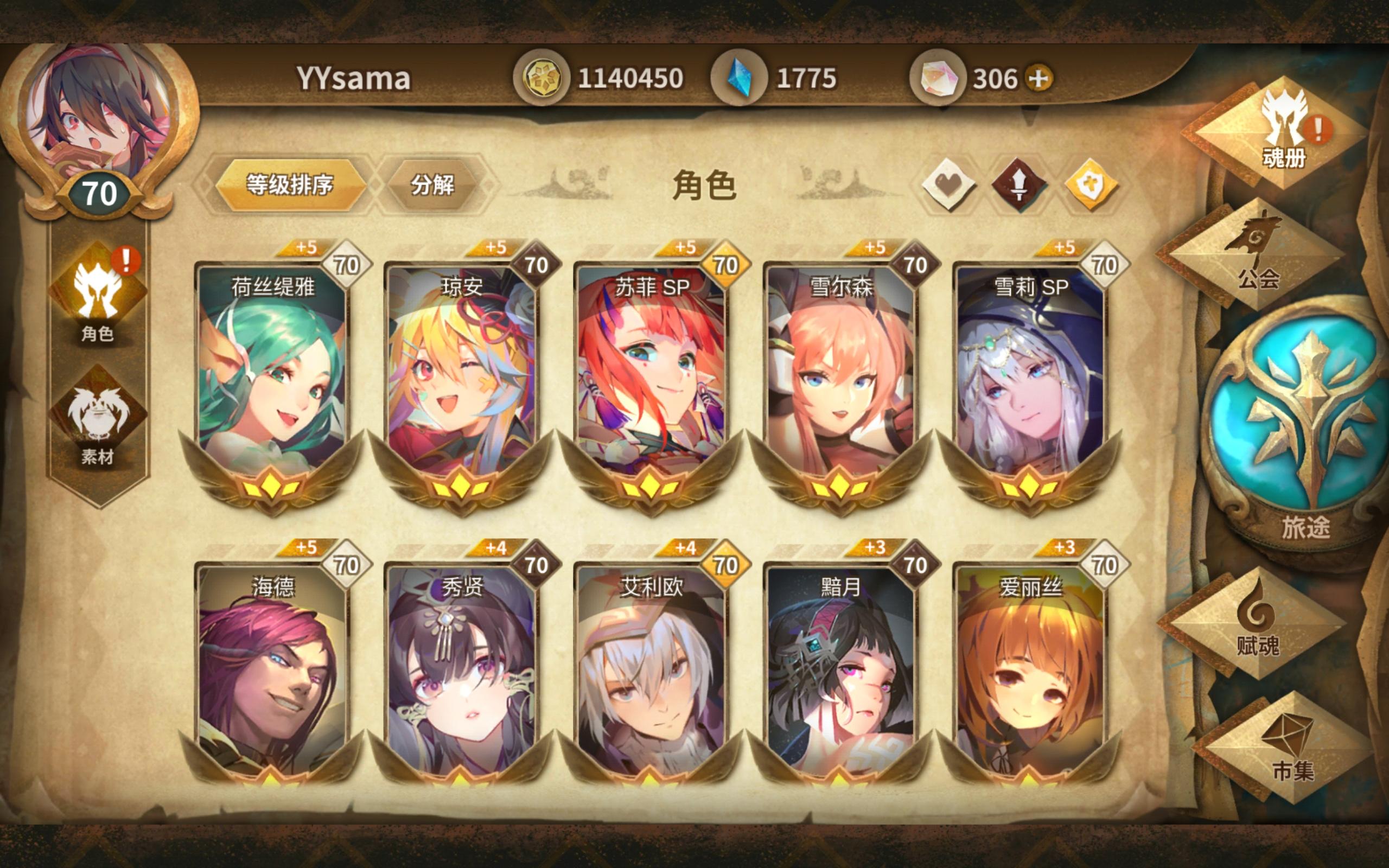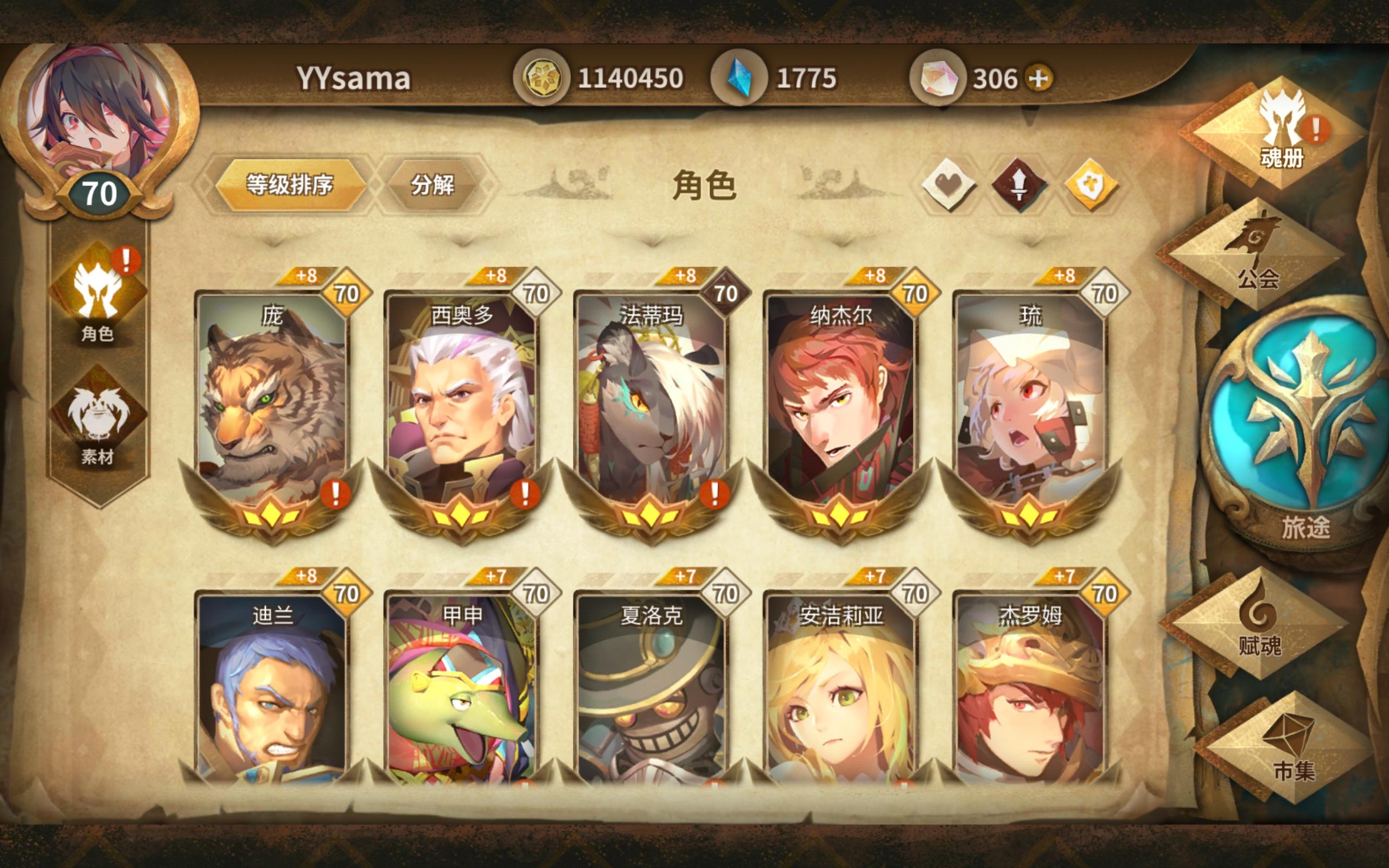 玩了大概两年了,看着我这么多金,其实我没充多少钱,除了少部分抽到的初始金,剩下大多数都是慢慢存碎片升起来的,有角色书的大部分也拿到了(很可惜圣诞虎活动那会很忙,没有拿到圣诞虎角色书)