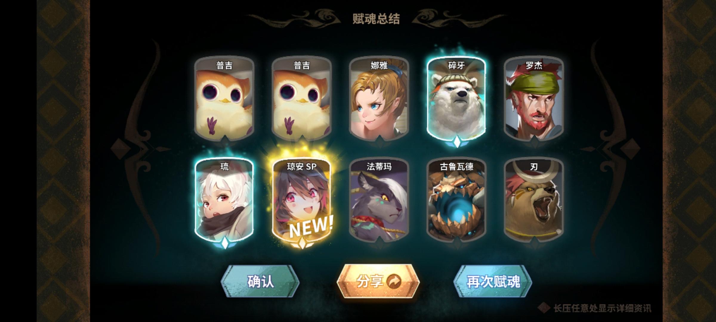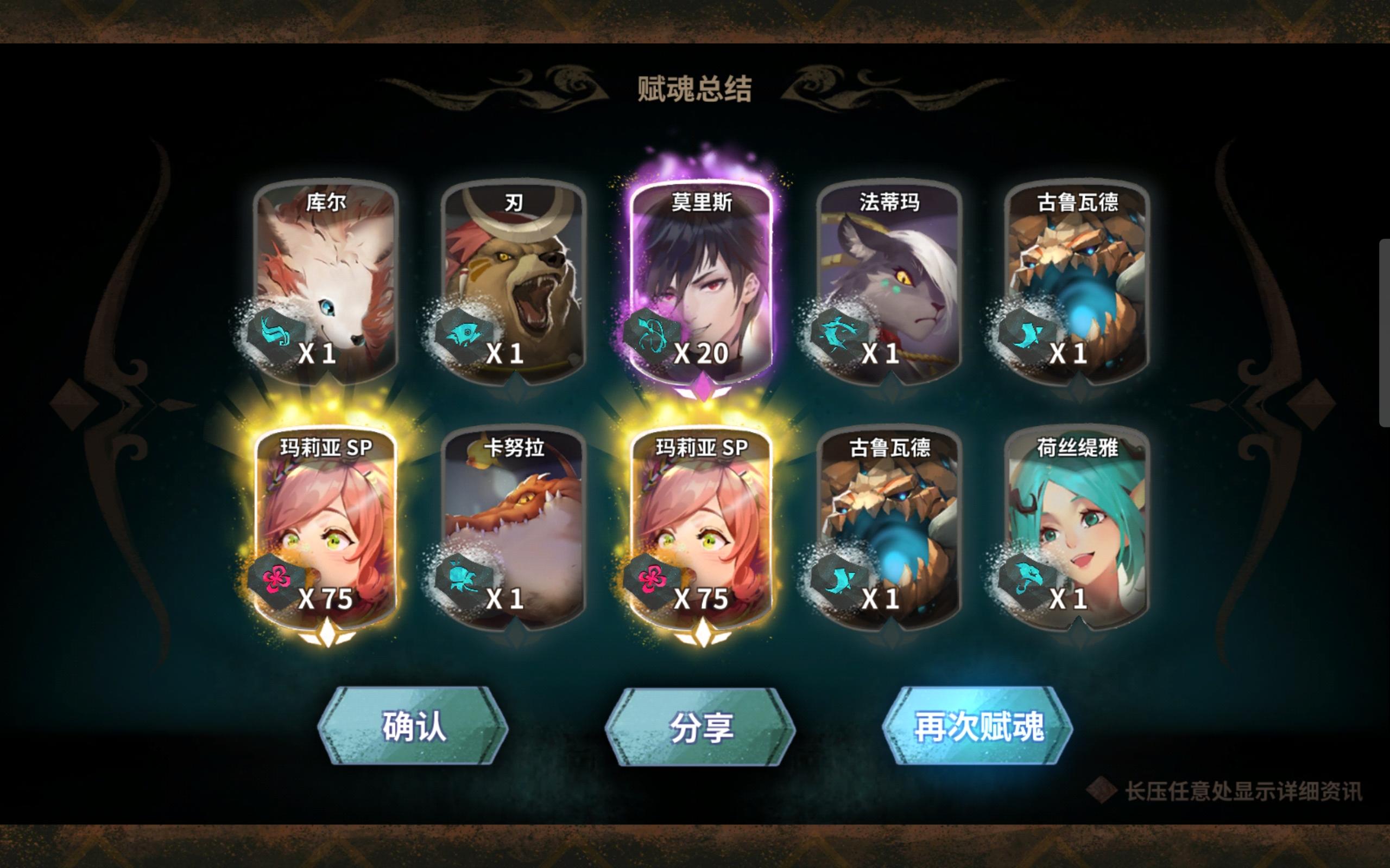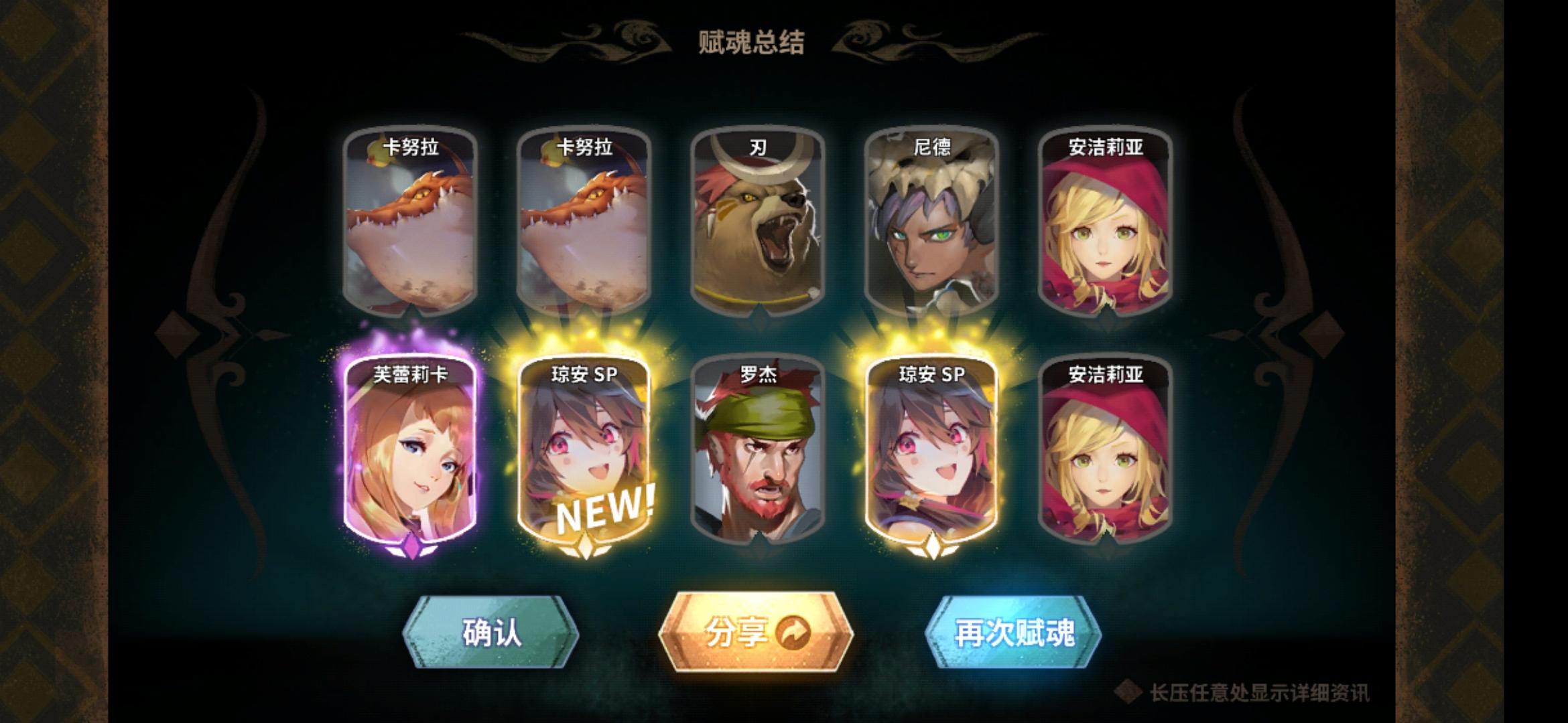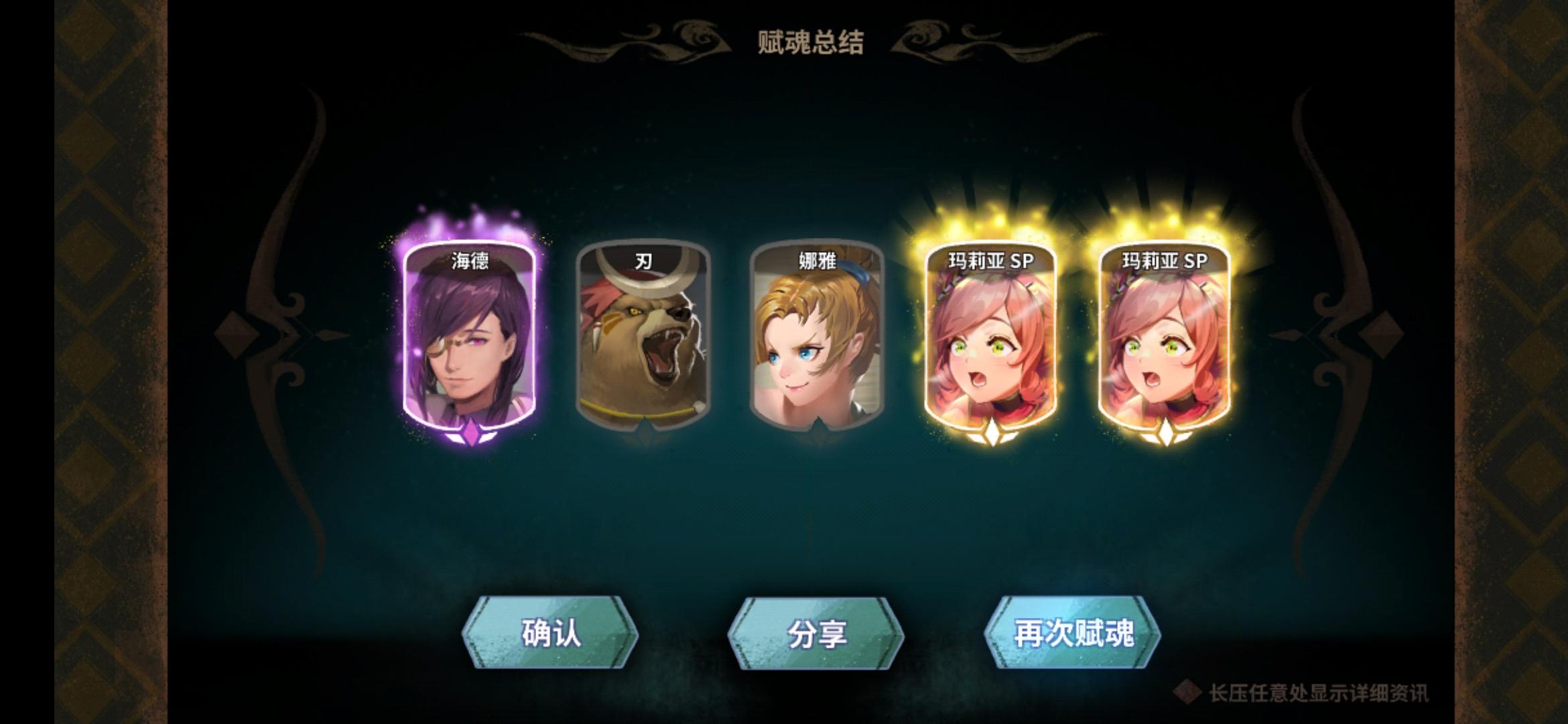 啊这,今天一上号刚开始真的究极欧,起源免费单抽一发出金,没截图。然后新池子红卡五抽,两金一紫,玛利亚sp直接能+15了虽然没啥用。可惜之后四十发蓝天白云,没出琼安sp还是太可惜了,欧气用错了地方啊