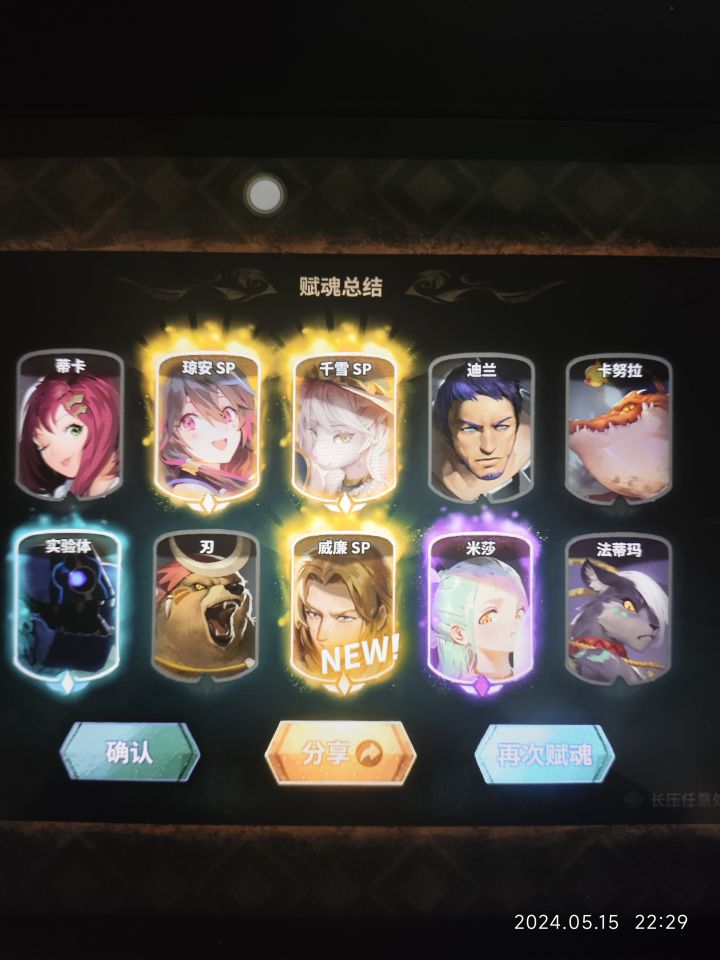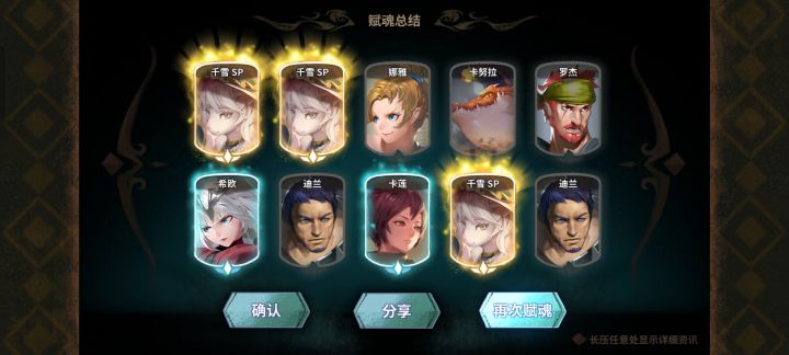 总计用了5000钻+5红票,4500钻出的琼安与千雪,原计划抽到保底威廉,现在圆满达成,总计抽取8金