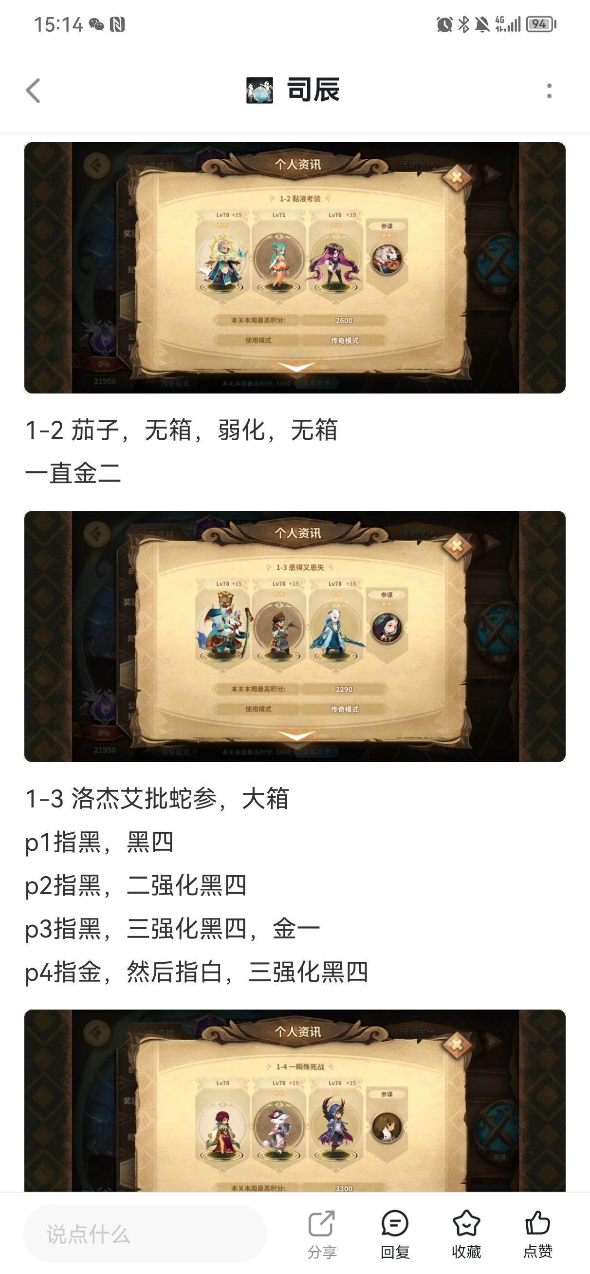 1-1 无箱满分阵容:1强卡莲sp+192千雪sp+1级二强迪兰/东欧+三阶矮子参谋操作:p1-p3 指黑,黑6;p4 指黑,3强化1战意黑6;1-3 祝福+白箱阵容:152lsp+192鱼杰+192艾斯sp+二强米莎sp参谋操作:p1 指鱼然后指艾斯sp,黑4;p2 指艾然后指鱼,指怪2,2强化黑4;p3 指艾然后指鱼,金4,黑2;(需要凹怪打白位)p4 指鱼然后指洛sp,