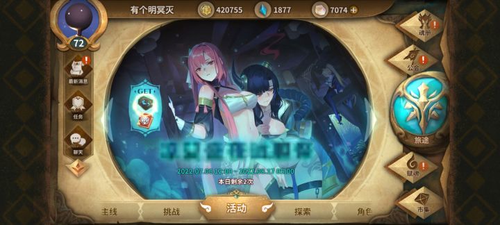麻了呀,我360渠道服,每天上线做做任务养老,看公告好像有新活动,但发现去活动界面啥也没有,也不能突破七十级,打开公会界面还会卡退😁