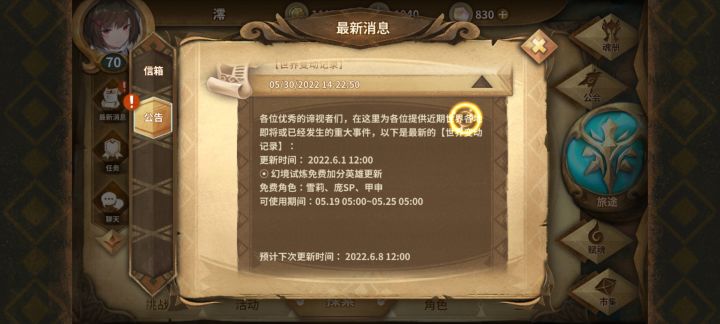 这文案写的是个啥啊?6.1-6.8的幻境,免费人物使用时间在5月份?麻烦看下,审核一下