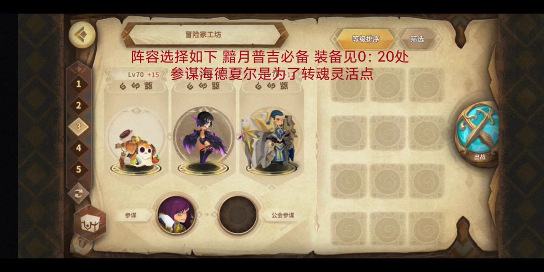 是不是等太久了感觉这次的工坊很简单就没有太多琢磨所以一直没来更新这篇给刚入坑不久SP没几只的小可爱们参考参谋会出现SP只需要请公会大佬帮忙挂上就好啰~公主+X+杰纳尔(专属)+人鱼参谋场地效果:锈蚀的诅咒其他装备请看影片开头~参谋技能:启发光标指公主,启发转好就用(叠盾金位)黑位其实随意,暗月只是带好玩的敌方后排攻击前上白2攻击后会赋予我方全体晕眩再用参谋人鱼解