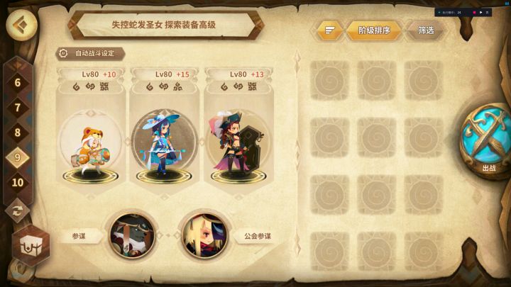 包含无法用探索装备的普高、普绝,和可以用探索装备的探初、探高。感觉这次复刻的强度有点低(也可能是我练度变高了),相比初见杀的时候参谋位的选择变轻松了点。阵容参考:玉米蛇+122,梦璃+102,迪兰+112参谋:主副不分公会位或自己位主:雨果SP(最佳参谋)、秀贤DR、白黯月副:姨母sp、黑普吉、玛利亚sk、尧宝、2强克拉克sk。箱子选择:触发我方指定角色的中间魂芯数技能;2CD。普