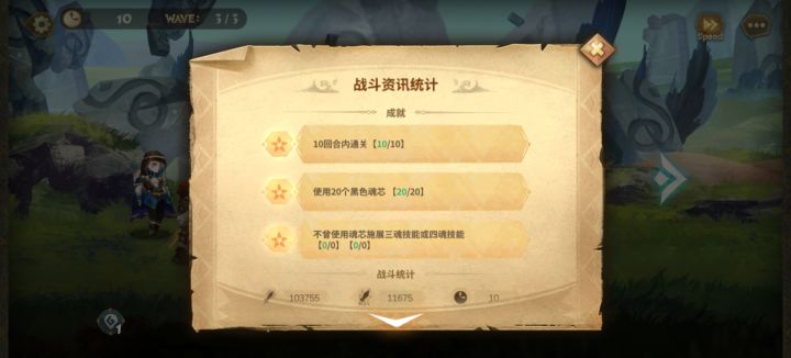 符文成就挑战第一关。公主+黑米+黑盾,参谋结婚鸟和二阶卢恩,一次过三星。