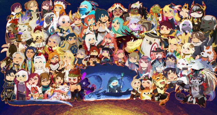 三天的奇迹!三天画完万象全家福!为了求快完全不打型,直接上手用色块抹,只是看着很繁杂(