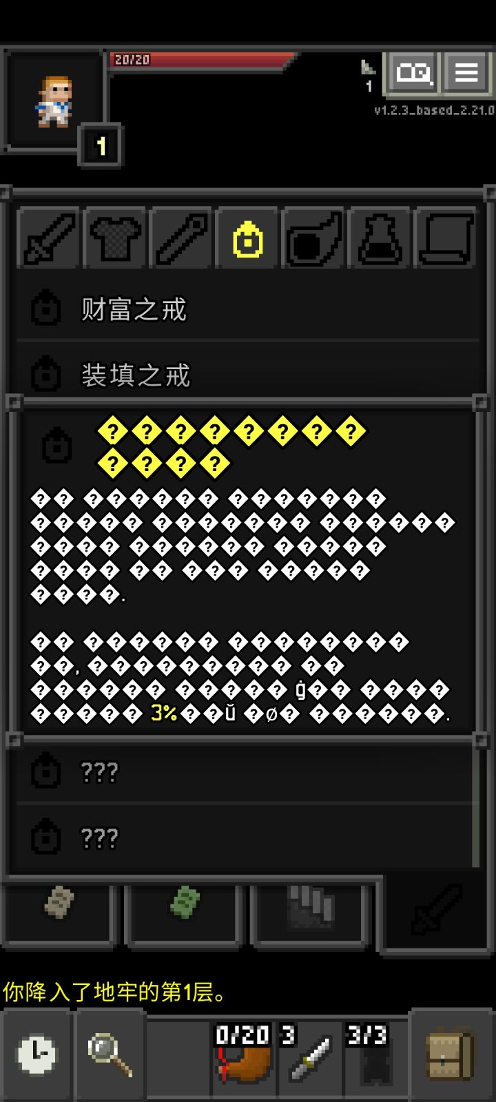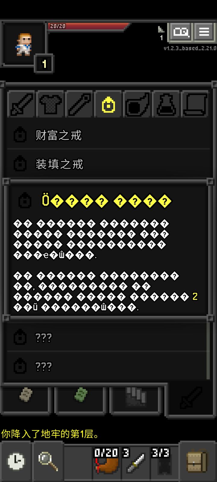 算了算了,只能等汉化人员完善吧暂时先玩一玩原版破碎地牢或者如果有懂韩文的人先过去到github(应该没有)反馈一下新出的五个戒指出现乱码,请尽快修复。https://github.com/Hoto-Mocha/ARranged-Pixel-Dungeon