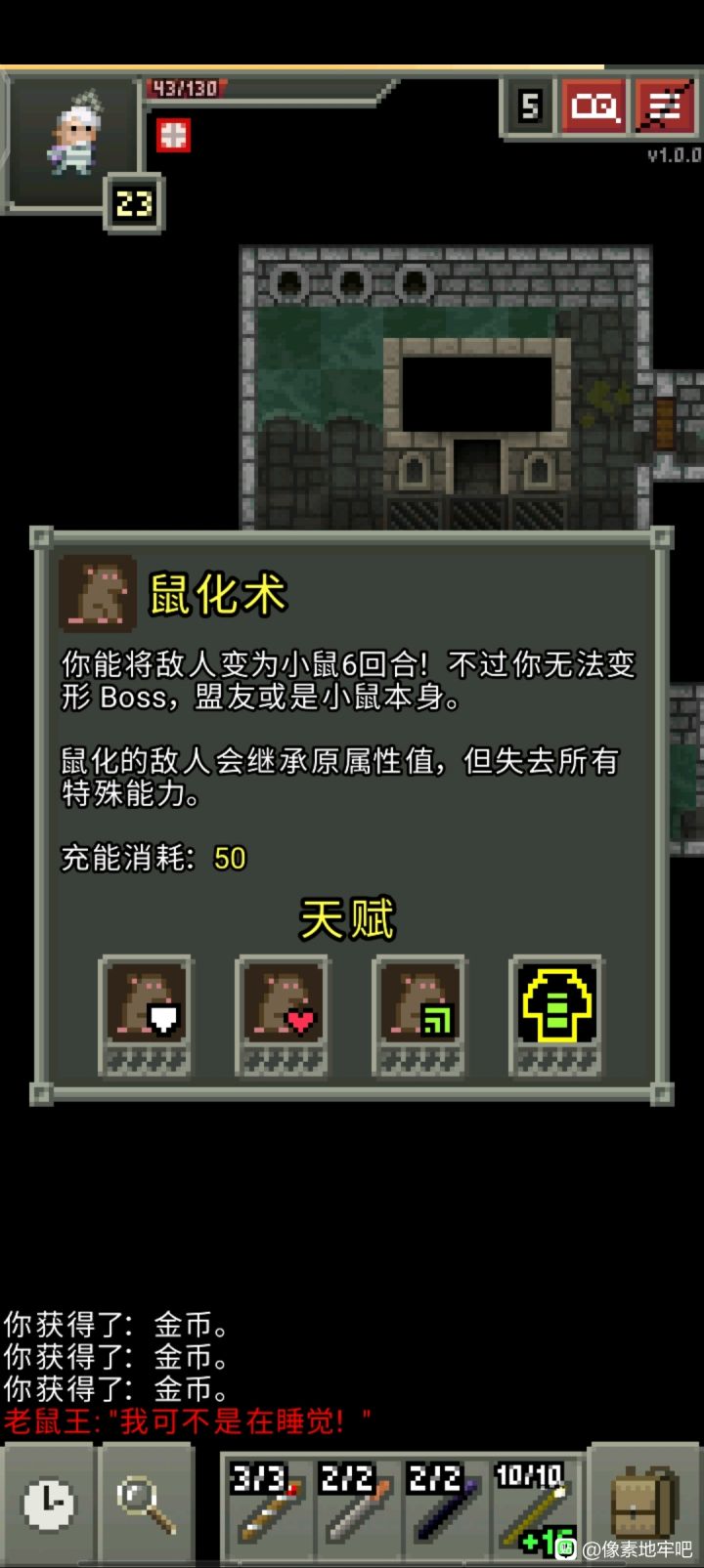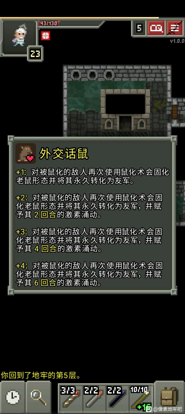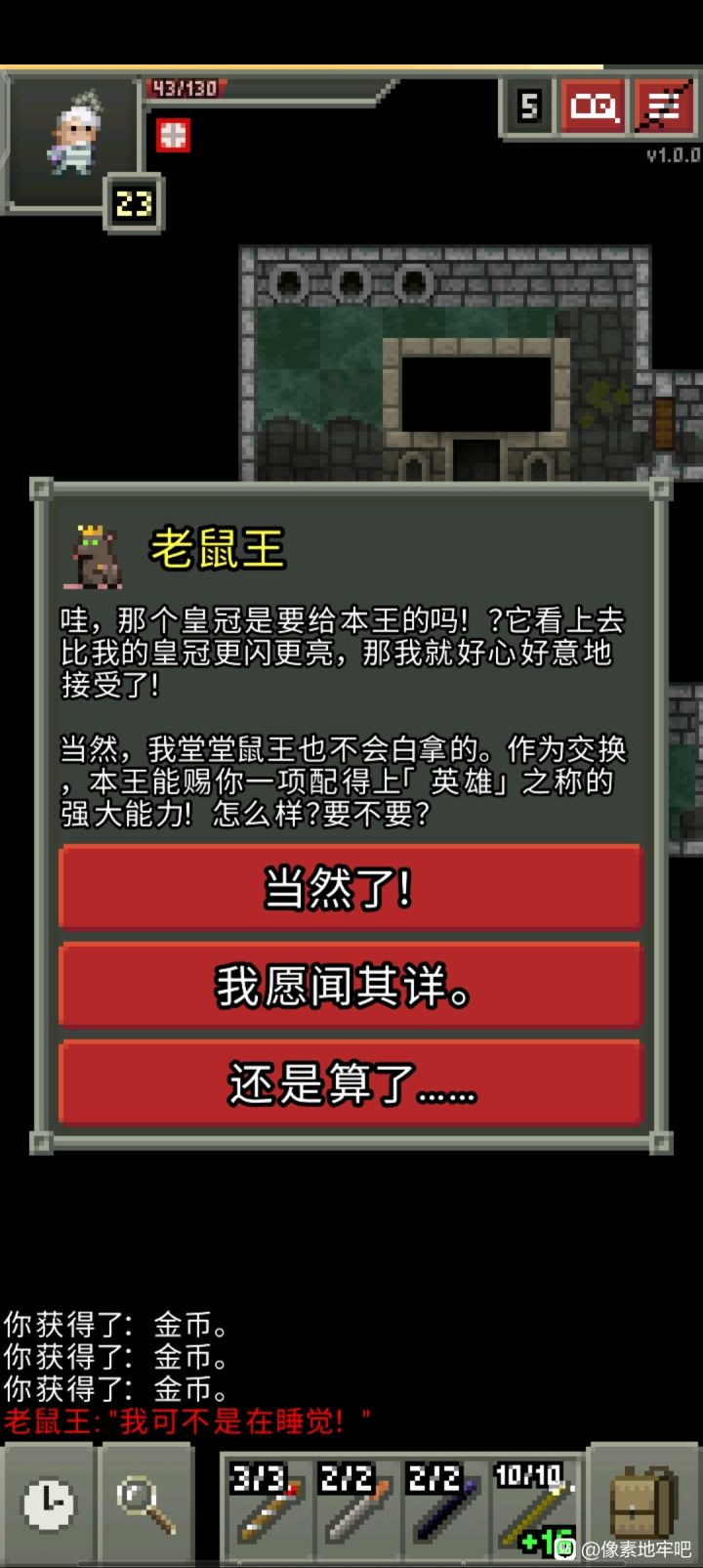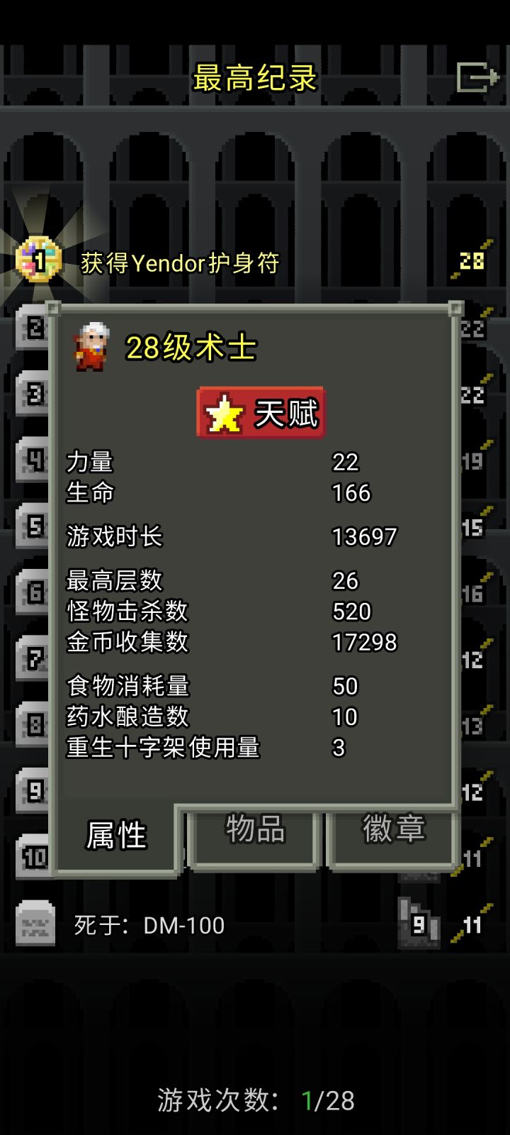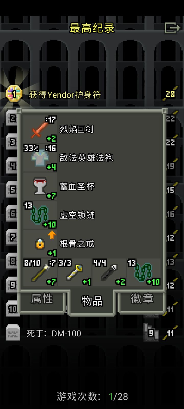 大概升级了15-20次吧简单说一下铸金的注意点升级卷轴卖掉,因为用了只会消失不要铸金铸上瘾,一味叠升级在同一个物品上因为没有商人,不买降压物品也不卖十字架了,注意控压,主要靠刷无头骑士和匕首降压,匕首越刺越痛,记得备好治疗药升级耗的金币是根据物品等级而非升级次数决定,所以前期升级0级的较差物品过渡并不会带来太大麻烦(但也只限0级)叠攻击而非叠甲,叠甲会被魔法伤害吊着锤(因为魔抗不会随护