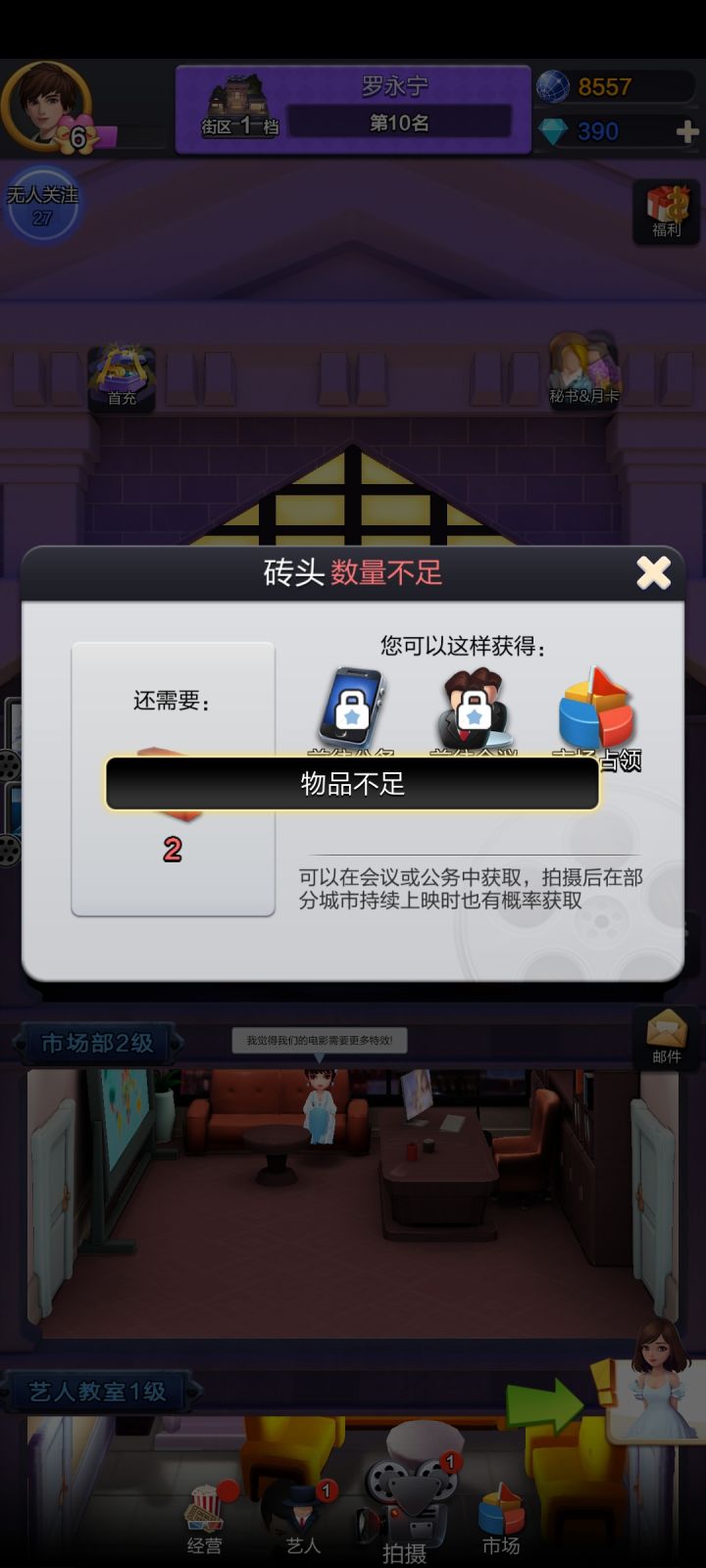 玩这游戏两周了,嫖了五个五星,城市推到49,114级,明天区档5,氪了66块钱,搞了个高级秘书,这样的徒弟,有大佬看得上吗