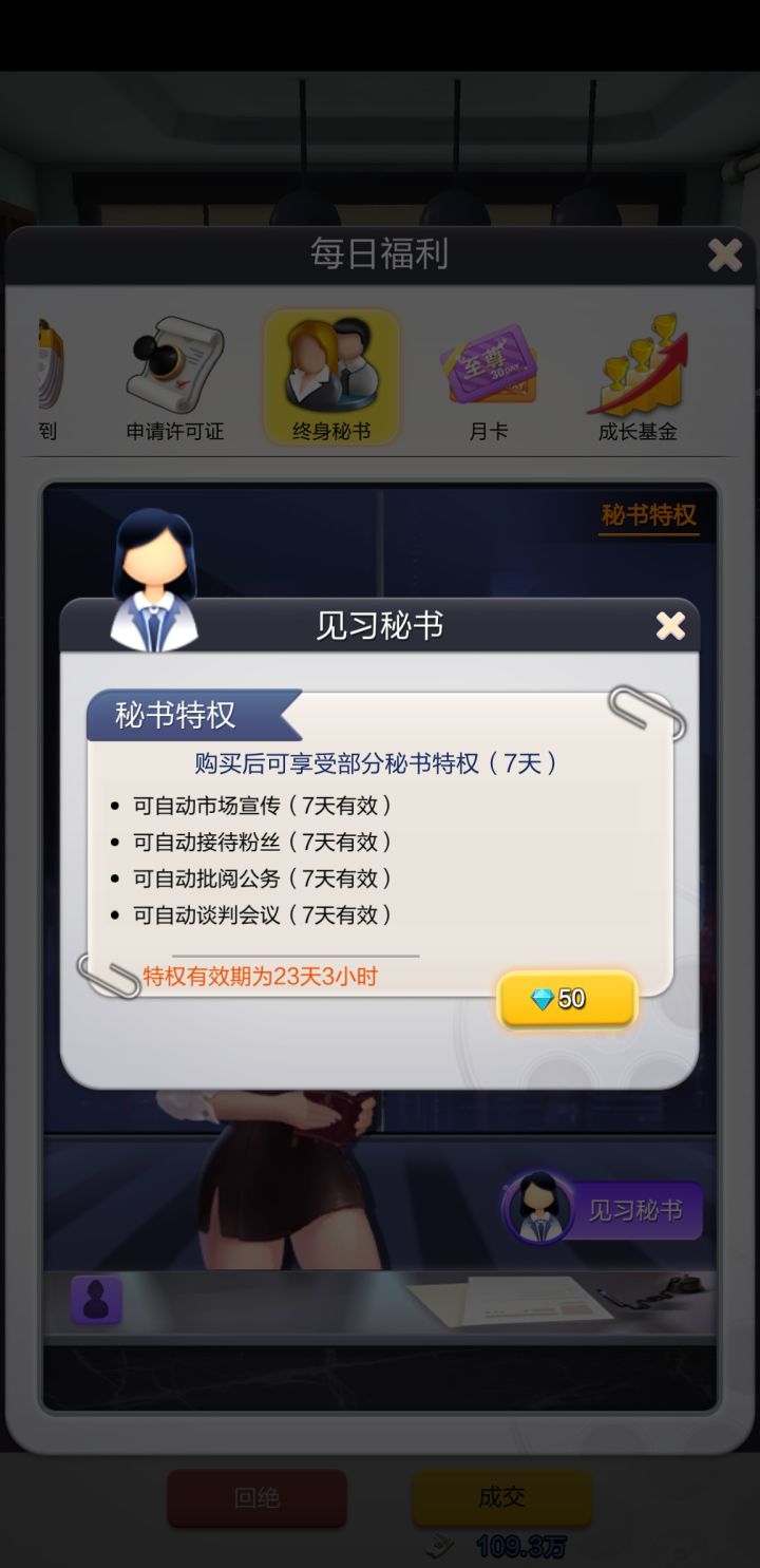 我的见习秘书有33天左右的时间,而现在却跟我说用不了?难道对于不氪金的玩家就是这样的对待?这就是你们的机制?一定要氪金?我买的见习秘书是一次性的?