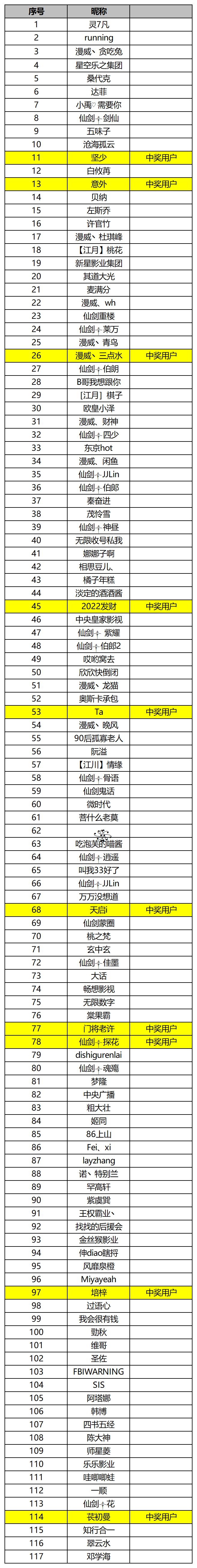 感谢468名导演支持!【每周一答】第4期顺利结束,全部回答正确的导演有117名(正确答案:BBBAB),已从中随机挑选出10名幸运导演,获得幸运礼包。(礼包将在4个工作日内发放到游戏内邮箱)全部回答正确导演(如下)==========幸运导演==========坚少 意外漫威丶三点水 2022发财Ta 天启i门将老许 仙剑༒探花培梓 苌初曼======今日宝箱=======礼包码