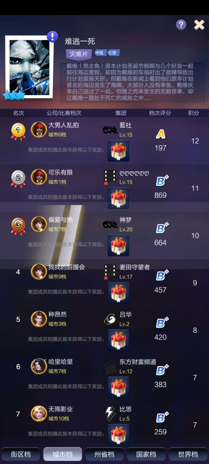 本周小编将为大家带来游戏内五星剧本《高空之上》的介绍与赏析。剧本《高空之上》可以通过每周末热映电影节活动免费兑换,需消耗热映好评券共26000张。电影节比赛档次和名字越高,每次获得的热映好评券越多。电影《中国机长》根据真实事件改编。机组执行航班任务时,在万米高空突遇驾驶舱风挡玻璃爆裂脱落、座舱释压的极端罕见险情,生死关头,他们临危不乱、果断应对、正确处置,确保了机上全部人员的生命安全,创造了世界