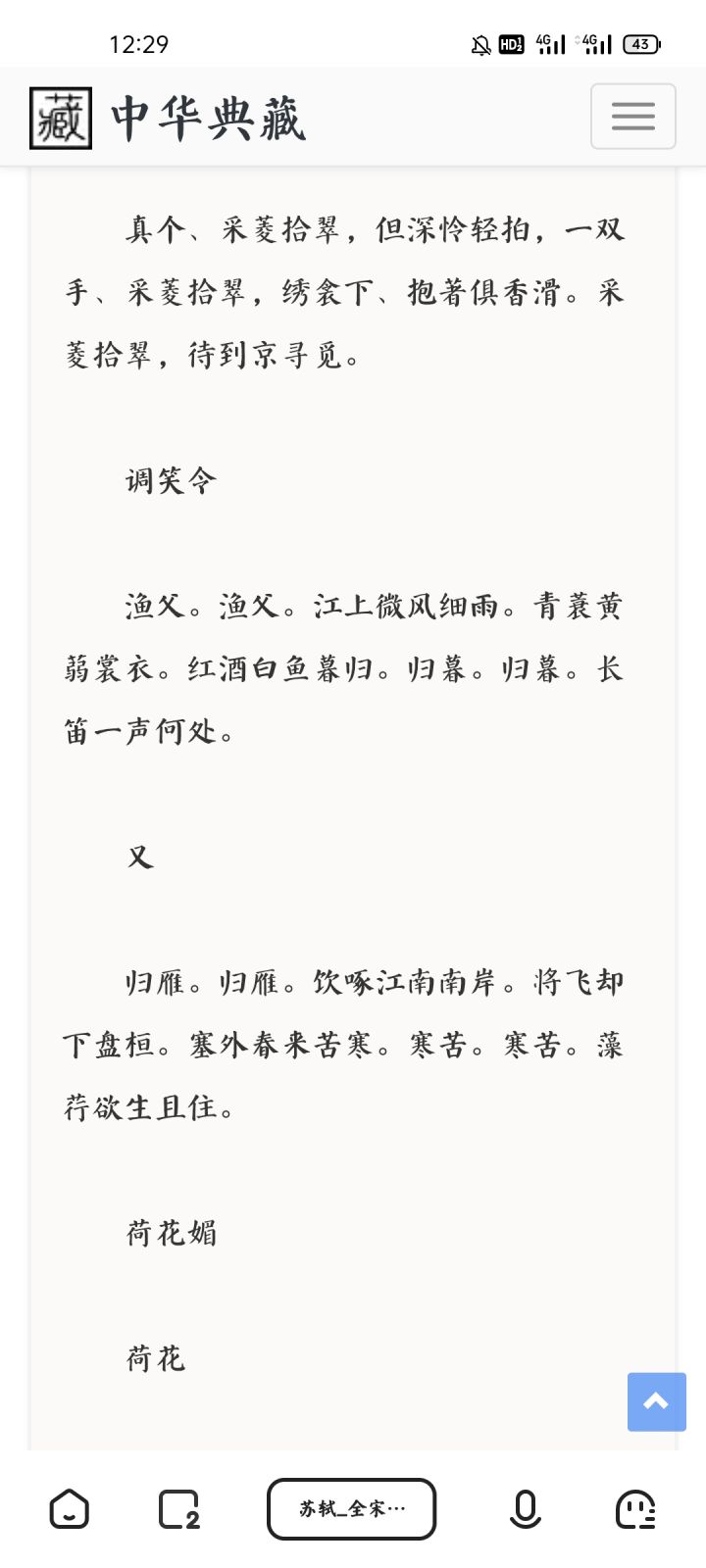 呜呜呜,官方,我对不起你,这是我昨天扒拉到的,苏轼的调笑令和苏辙的调啸词二首,我改错了,给你们添麻烦了😭😭ORZ