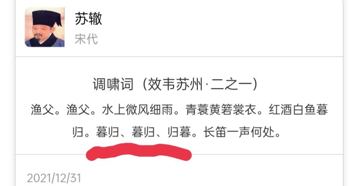 错了错了,应该是归暮,归暮,长笛一声何处。官方注意诗词正确性呀!