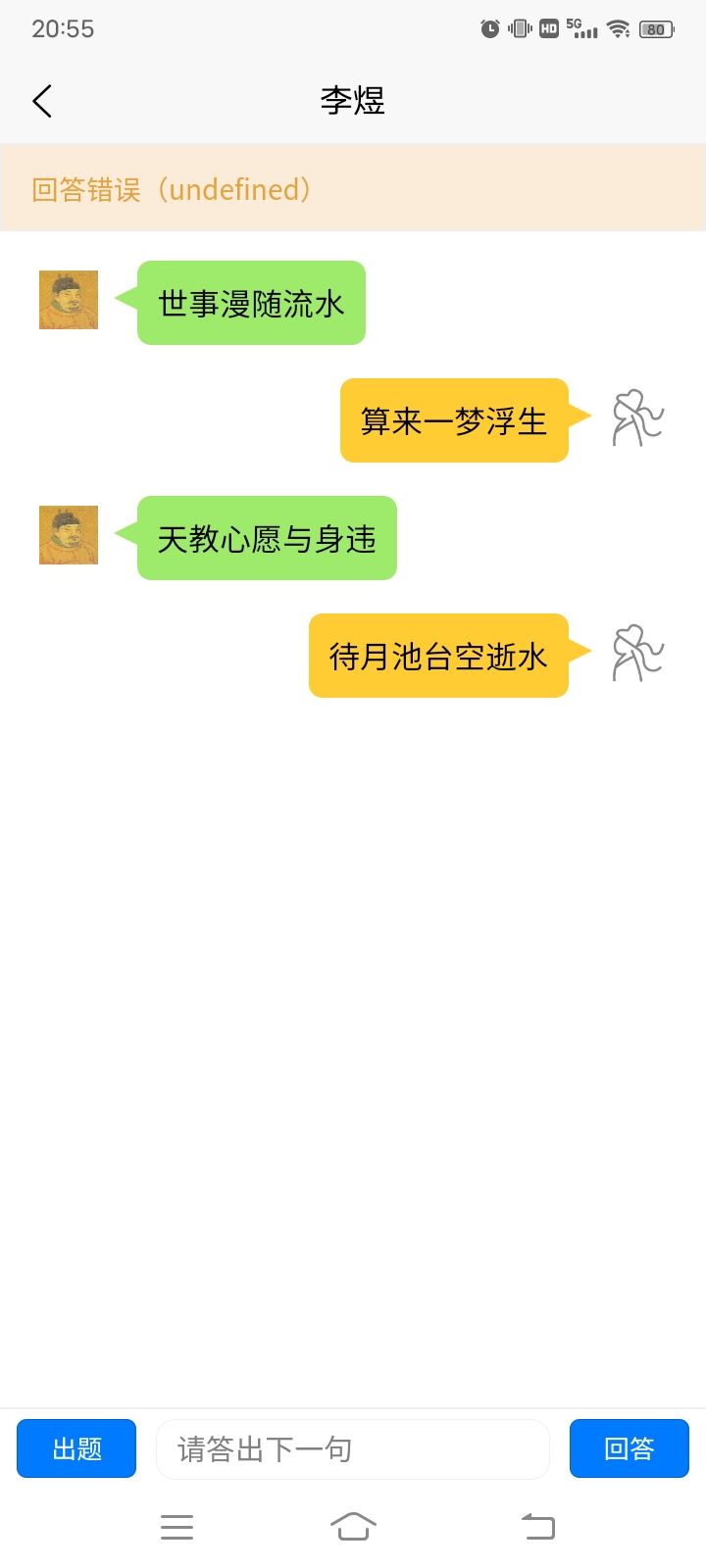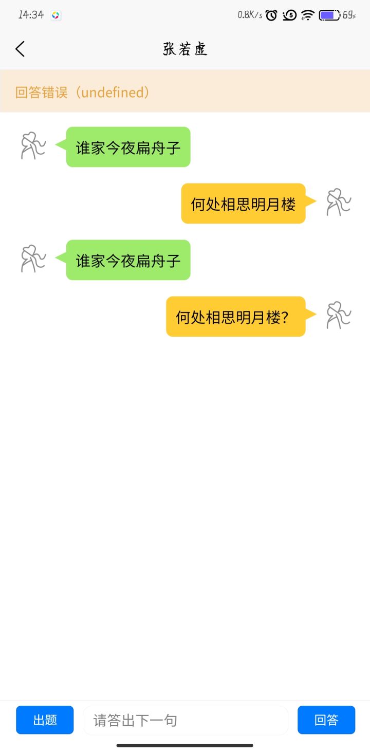 卡了一个小bug,之前一直显示不出来。张若虚 谁家今夜扁舟子?何处相思明月楼?是正确的呀。但是一直显示的错误哦