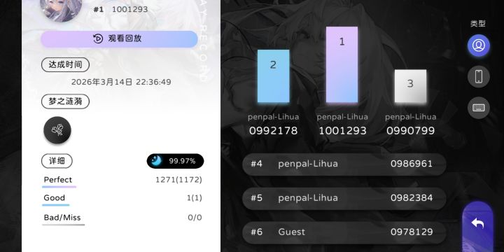 个人定位:交互纵连综合谱面(尾杀纵连不知道爆了多少)。会打这个可以去打phi的穿魂了
