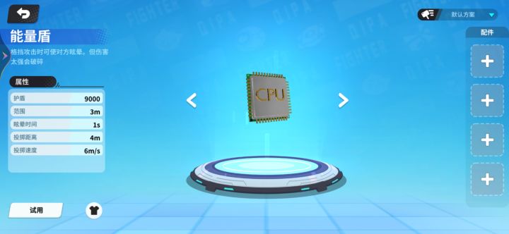这个盾的两个金配似乎使用面有点低,建议加个新金配名称:电磁盾反品质:传说介绍:在别人使用近战武器攻击时开盾,如果对方命中能量盾,则会造成造成盾反效果,对前方0.5米范围内敌方造成电属性伤害#强烈建议