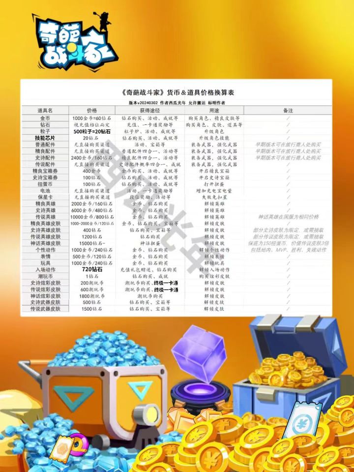 【攻略】货币&道具价格换算表