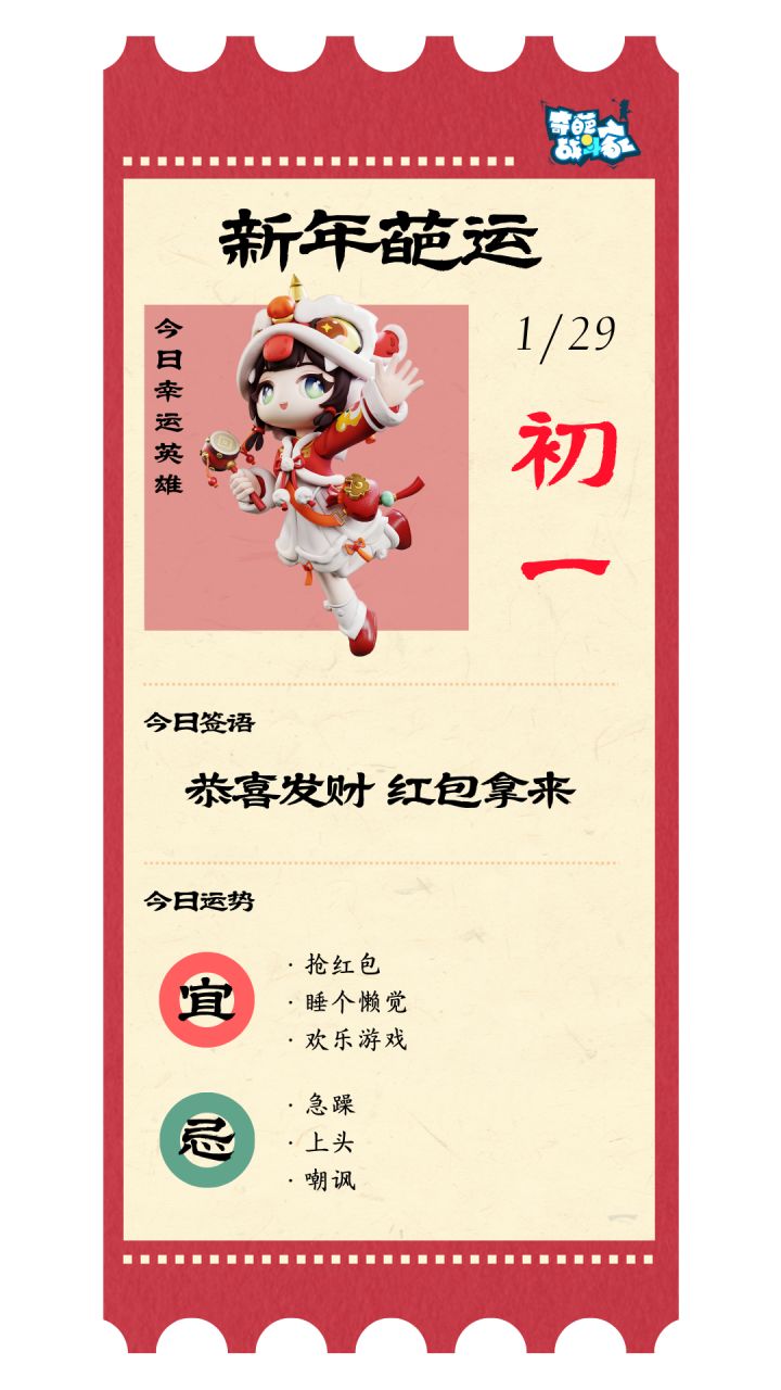 战斗家们新年好!!快来接收你的新年葩运卜算——据说做好事就会有好运哦~咦?这签面上好像还藏了个字?战斗家们能不能帮帮老(yan)花(xia)的小扫扫一起看下是什么?另外,在评论区留下你对奇葩的新年祝福,小扫扫将随机抽取5位送出88钻石~注意事项:1.禁止使用同一账号回复无意义内容以增加获奖概率,一经发现,则取消盖楼活动获奖资格,奖励顺延至下一层楼。2.中奖战斗家的回复内容符合活动规则