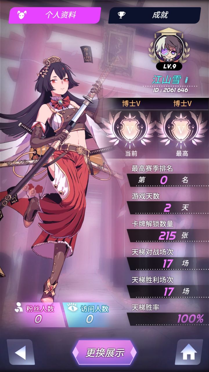 百分百胜率上博士卡组,所罗门快攻优点:1.卡组成型简单,没有ssr卡,就几张sr,造价低廉,新手玩家福音 2.卡组强度还可以,而且单局结束时间快,适合快速上分 3.操作比较简单,大部分时间都是往对面君主脸上无脑怼另外有个bug,0费的烟幕收回卡片并不会减2费,有次我表情都发出去了,却因为这个卡费了没有在当前回合斩杀,装逼失败。
