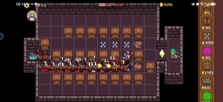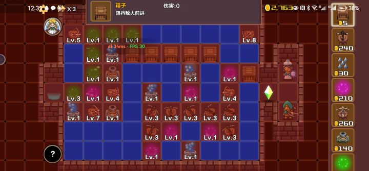 由于肝不动了,就写一下攻略,让新人能更快入手。简介,塔防游戏,固定画面上有很多小格子,可以在格子上放置防御塔,每一波怪也都会走在格子上,最右边是水晶,进一个怪就结束游戏,也就是说,可以规划怪行进的路线,说白了就是可以让怪永远走不到水晶😉,只需要在水晶口反复放置和售卖箱子就可。飞行怪会从入口一直飞到水晶,需要额外关注。推荐阵型,只需要中间放置一排,每列两个连着的防御塔就行,因为防御塔射程是两个格