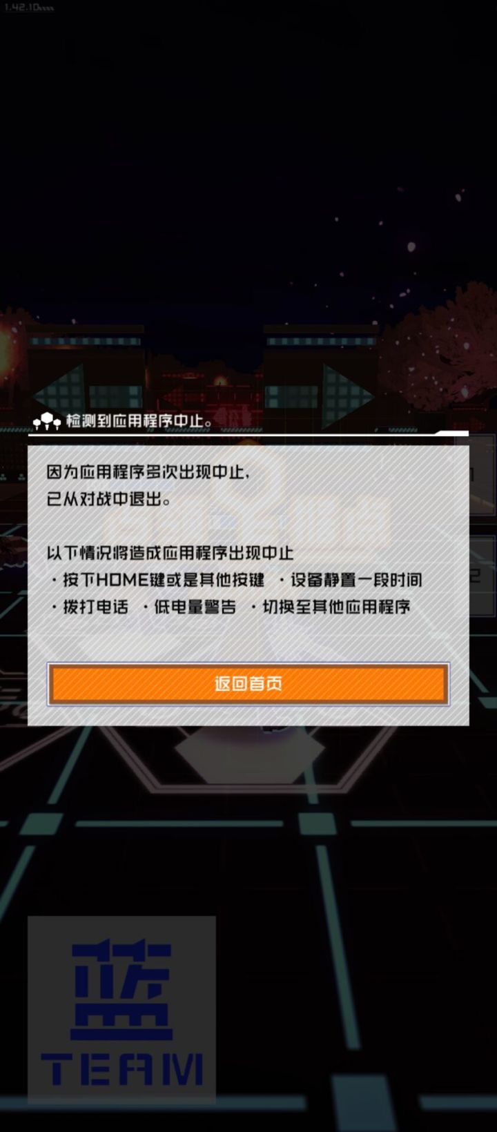 是朋友手机上出现的情况,从三天前就开始频繁出现。具体情况是应用卡死,卡死后会弹出应用遭到中止现已退出对战的弹窗(如图),而每次出这个弹窗时他其实根本没有切过后台据本人说,跑图走着走着会卡住掉,开始战斗的时候画面卡顿暂停一下会掉,敌我方开个大、自己开盾和垫卡也会突然卡住掉。他给我发的截图里还有几次是已经结算在MVP画面时卡了跳弹窗,还有局势胜利差三四秒结束的时候卡住跳弹窗……他自己表示昨天几个