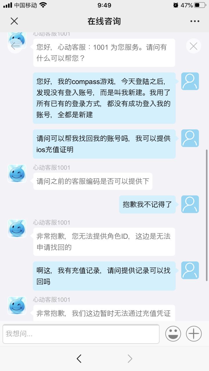id:轻云学业咸鱼tapid:本账号昨晚还快乐排位呢,今天一打开就叫我创建新账号。我开服玩家,从来没搞过小号,因此也不记得用的哪个登录方式了(大概是tap或者ios本身)。然而用哪个登录方式都是新建账号,等于账号不见了…由于不记得客服码,很尴尬。一般玩游戏至少出示氪金凭证都能好说…但心动客服完全没法解决。这个故事告诉我们一定要记得自己的客服账号。新进展,翻记录翻到自己的客服号了。至少比没