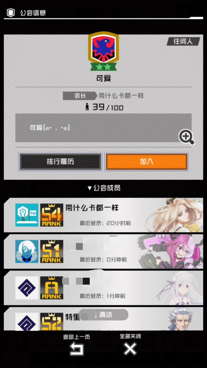 这四个公会成员高度重合,且存在很多四卡等活跃账号,疑似脚本号窝点。其中两个公会的情况(已对画面中疑似交易完成或无关的账号打码处理):其中的高度重合成员:后两个40卡等疑似使用新的脚本号养成方式(可能因为卡等太低在这个段位不好升段)。希望官方尽快调查处理。