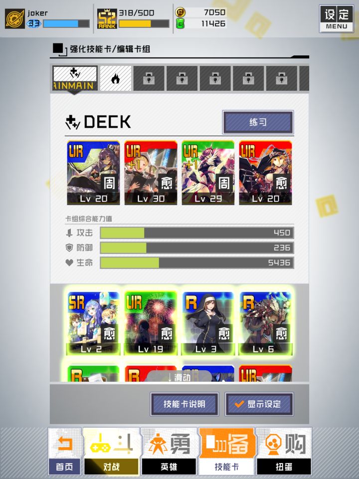 差不多一个月前入坑 最开始3天拿着一套奇怪配卡的乃保 靠着运气 蹭上了s3 然后连跪现在打康25天 多了贞德和汉考克 而且卡等90也只能上到s3 然后连跪这游戏鬼头也太多了吧 感觉比上个赛季还多 基本上把把3鬼头 走位扭一张卡骗一张卡 但也不是每张都能扭 机航近破中了就死 有点心累 但又要打黑晶 打竞技场折磨队友也折磨自己 不打竞技场奖励拿不完相当于少得1~2张ur 萌新迷茫了