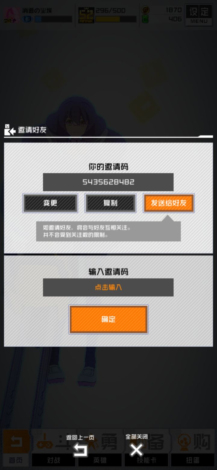 我的邀请码4983012773互填组队了啊亲,我的贞德传送门都加1了。