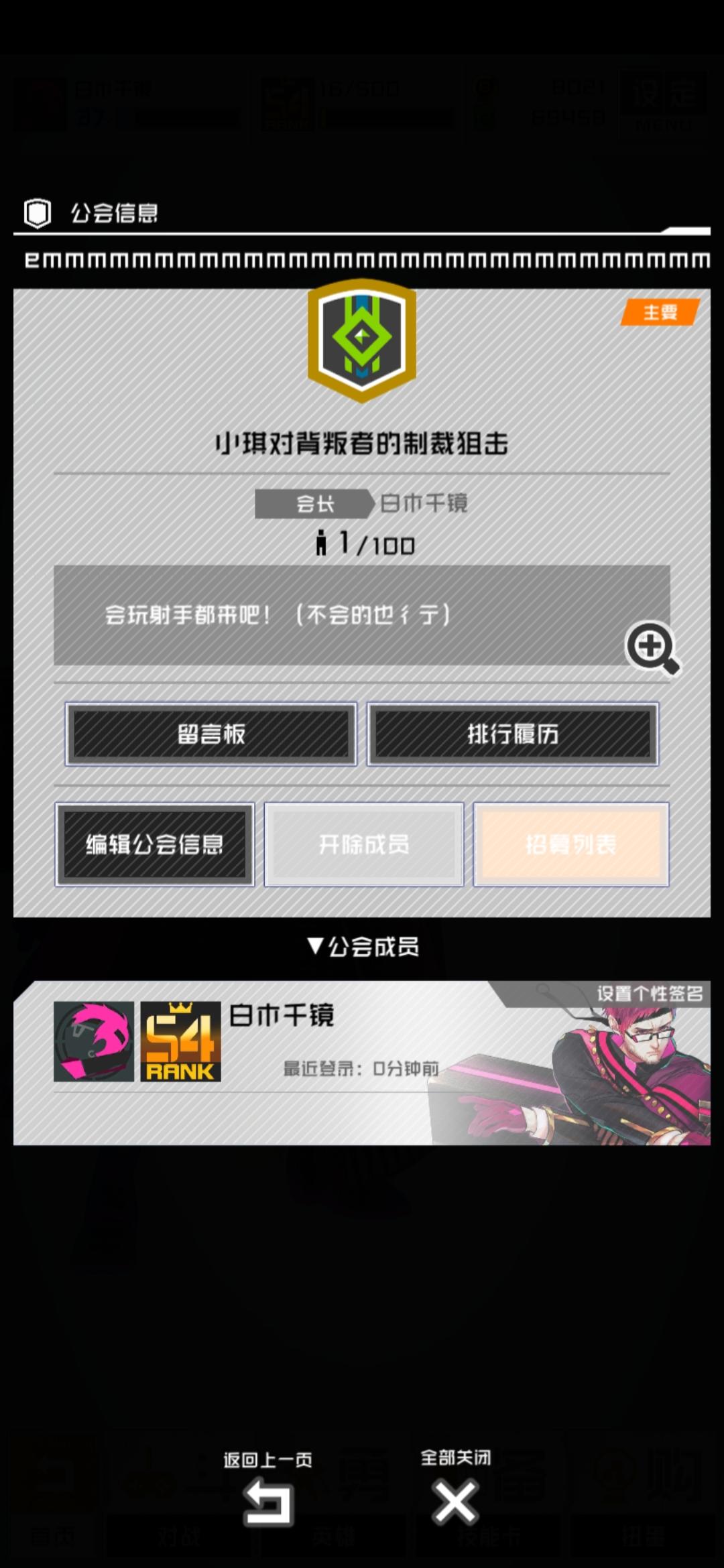 从公会系统刚出来就创建的,至今无一人添加,惨。我也想拿每周200币的奖励啊!