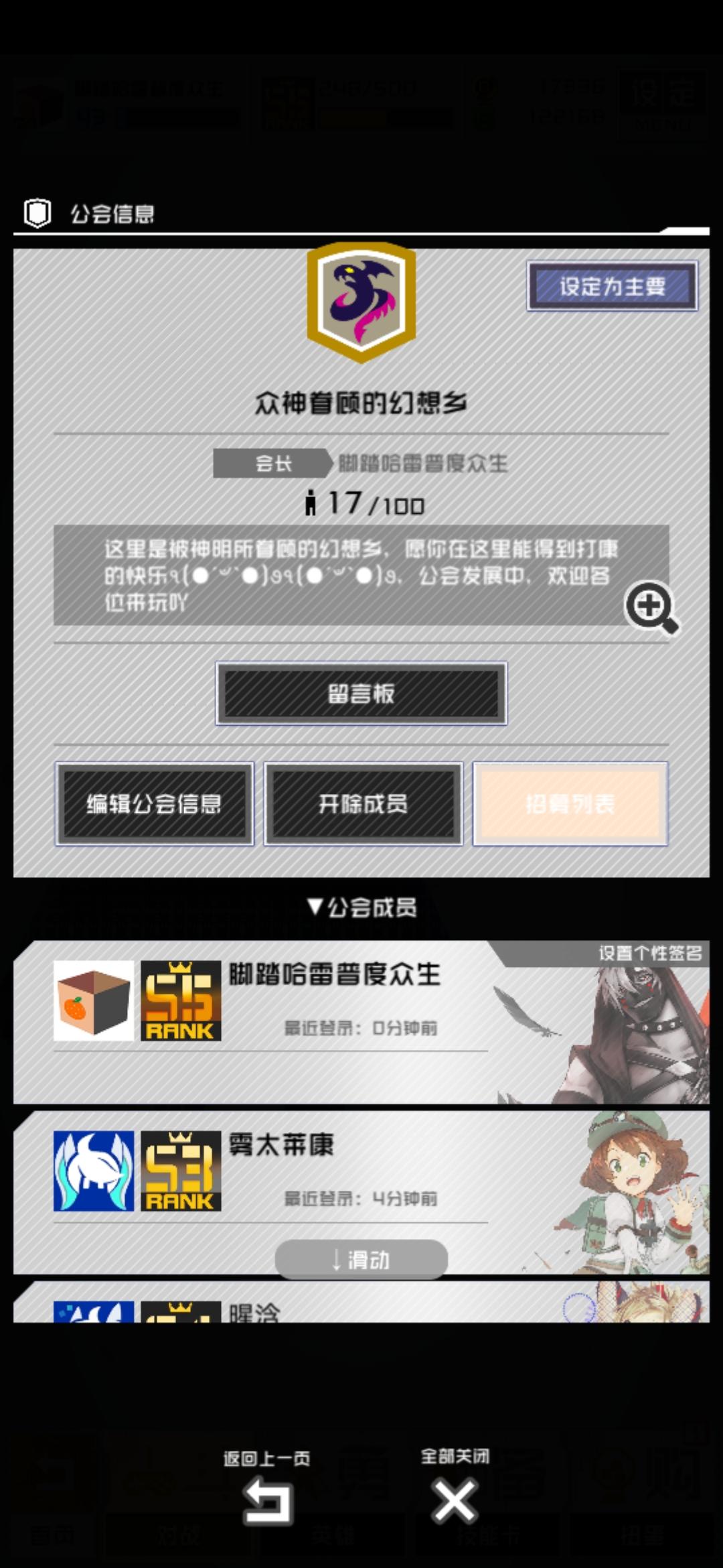 虽然有点迟了,但是既然赛季还没开,一切都不晚(?)宣公会啦,公会简介?这种东西怎样都好吧,咸鱼公会,混吃等死,无论是大佬还是萌新都欢迎,快乐就完事(你问有没有群?……现在的人数还不需要吧)
