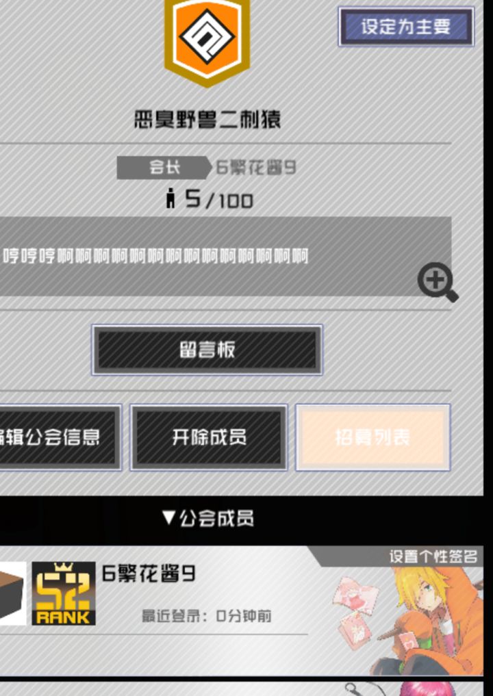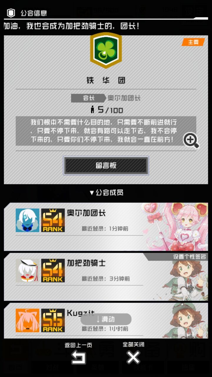 吔☆这里是铁 华 团公会(注意有两个空格,直接搜“铁”也可以找到)本质是个养老公会(看会长名字就知道不是个正经公会hhh),也没有要求什么的,只要申请了都会通过√。(大概吧,看会长在不在线)欢迎各位大佬萌新过来玩。