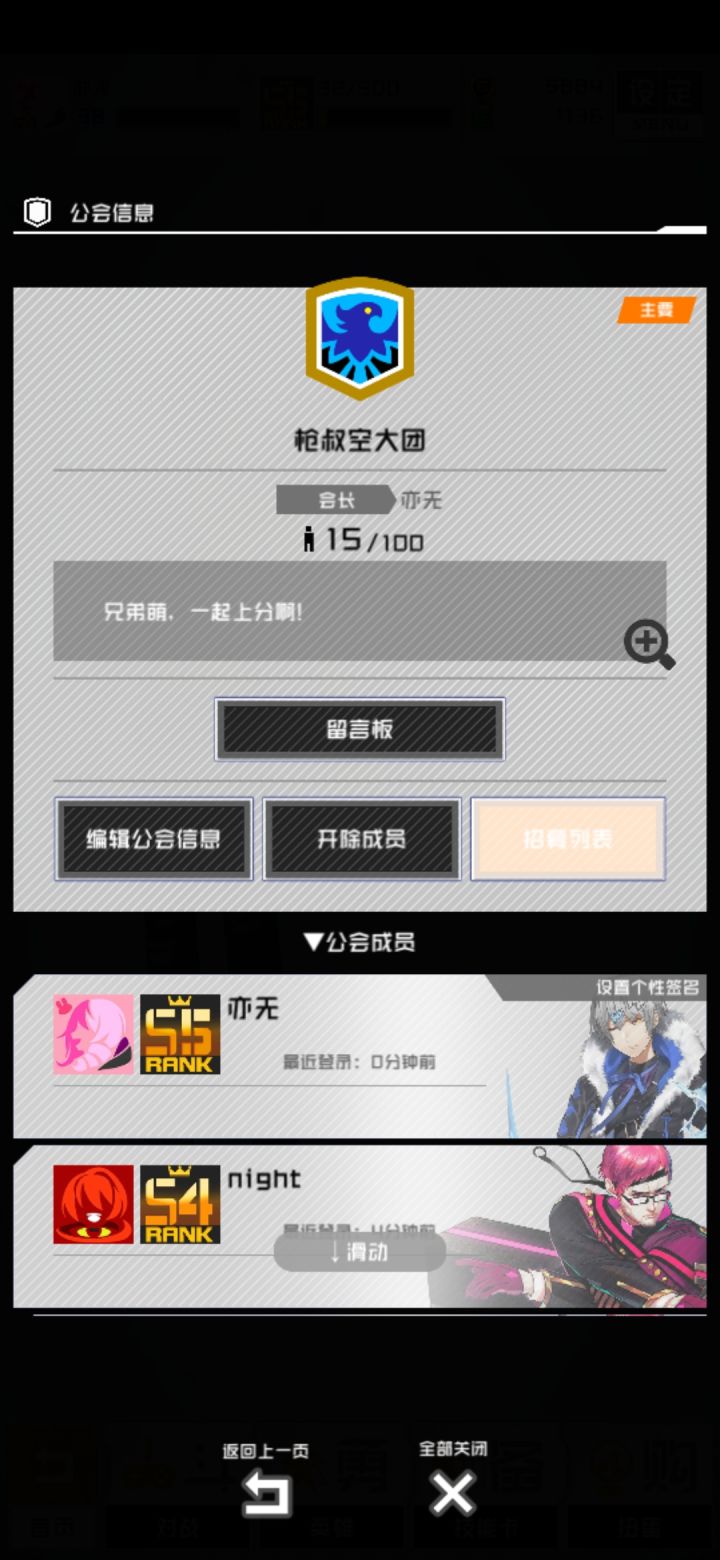 公会名修订改了一下,本来想叫枪叔迫害团的,迫害被和谐了,只能改用空大,害~(起名无能)我和朋友都不会玩枪叔,意外的进了很多枪叔玩家,欢迎各位枪叔玩家和迫害枪叔玩家来公会~想要能带我(做公会任务)的兄弟(雾)