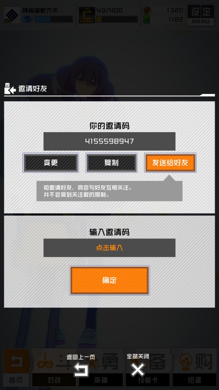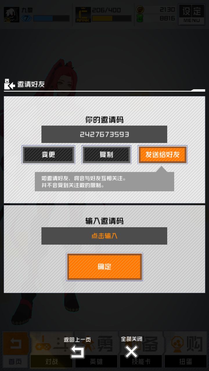 希望有萌新填一下邀请码9577599211,可以一起打游戏