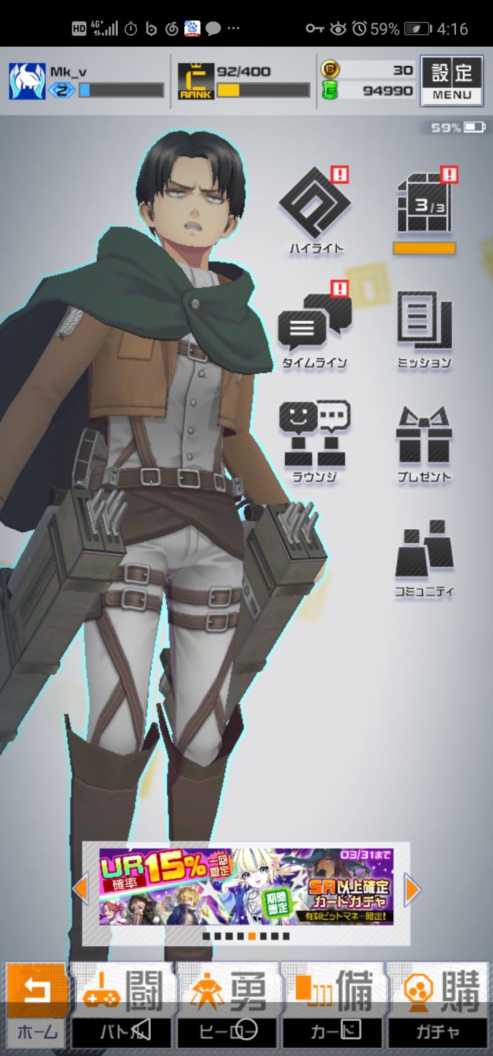 日服兵长复刻,作为萌新的我居然一发入魂(虽然抽卡只得了个30愈😓)希望到时候国服联动时也能够一发入魂吧(现在说是不是太早了点ฅ(・ิϖ・ิ)ฅ)