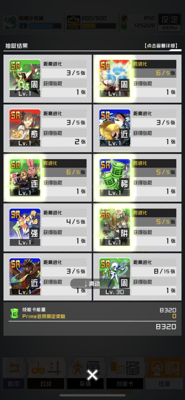 2个号都这样,SR付费11连真的出了11个SR。。。