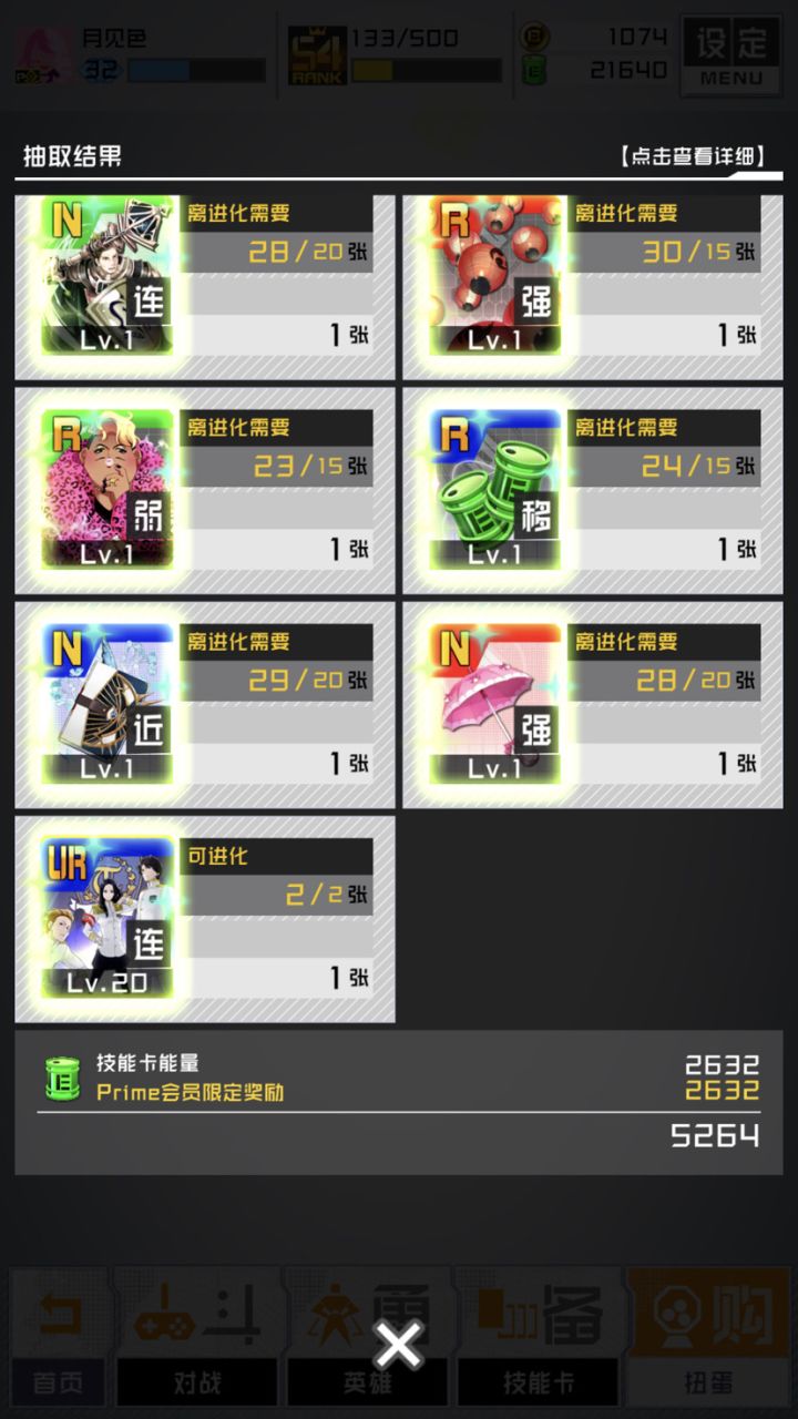 日服国服加起来四天一共8次的免费11连,有用的只有一张绿反和竖琴(竖琴是日服的,正好能加1所以有用)明天最后一次了,保佑我能出点人权卡