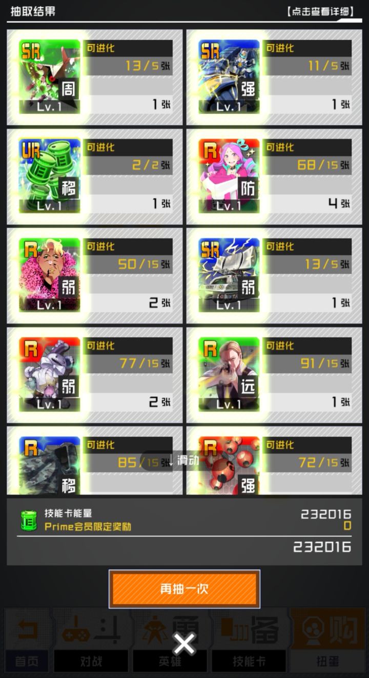 我玩乃保憋到s1抽奖2次20一次60一共出了一个ur,还是暂时用不上的那种。后面ur抽奖又抽出了同一张(前面说暂时用不上的那张)。求大佬指教怎么转生