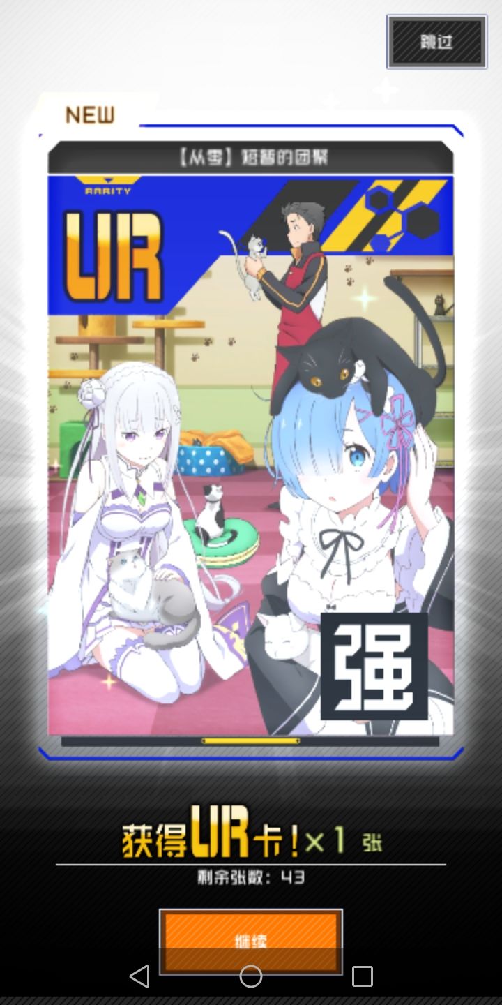 刚看了下帖子 感觉怨气不小诶.....我是150抽 一个近破 然后三张联动SR就木有啦然后说角色是 蕾姆 毒叔 特斯拉 除了抽卡有点非 毒叔皮不太喜欢外 这次应该算相对比较非的吧不过角色齐了就很开心啦