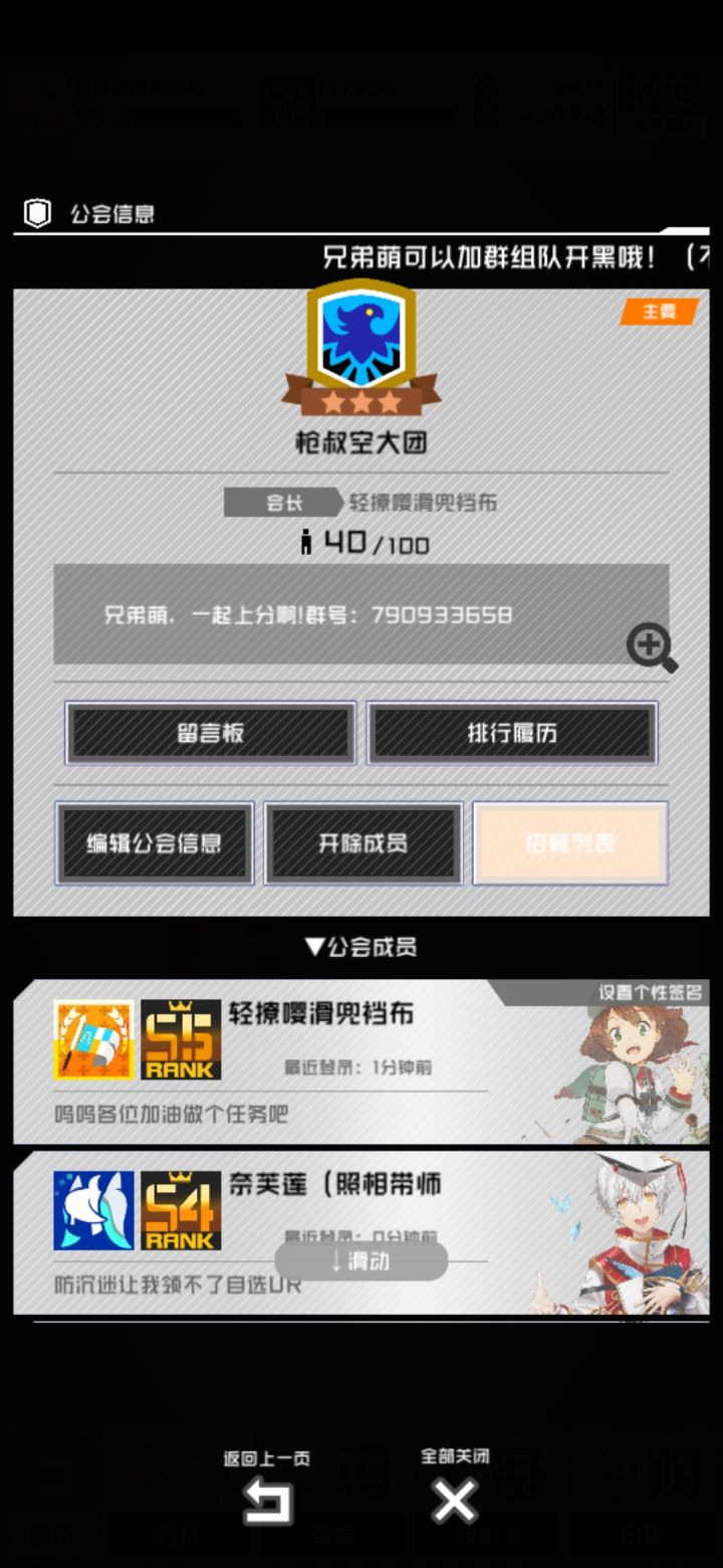 在一个阳光刺眼的夏日,我发现之前公会的qq群被解散了,我眉头一皱发觉此事并不简单,于是登陆游戏发现公会也离奇失踪了,于是来到论坛发帖问有没有公会还愿意收留我这个小可怜,然而时至今日依旧没有收到邀约,但是我相信并不是大家不喜欢我,而是因为所有的公会都已经接近饱和,那么该怎么办呢?。。。。。。。。那当然就是自己创一个公会啦愿意加公会的小可爱可以考虑一下,要求就是每天至少进行五场对局
