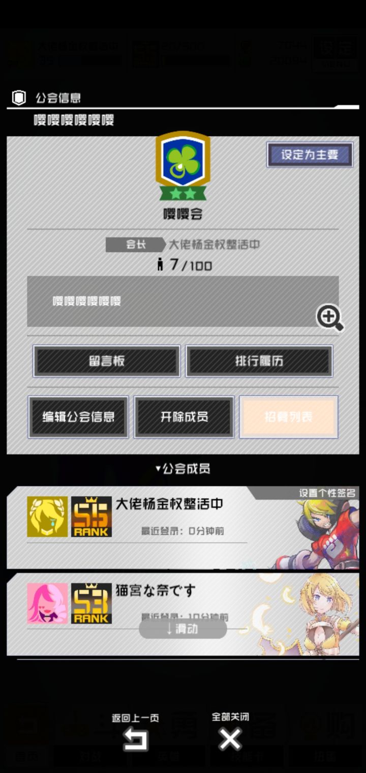 萌新公会在线招新,s1门槛,无要求,无需加群,休闲养老型公会,只要定时刷一刷公会任务就好了,真的超级佛系养老公会,路过的快来康康孩子⑧