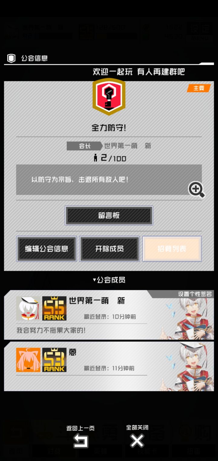 又来宣传公会啦!欢迎更多萌新 大佬加入如果有需要帮忙的 可以找我啊~(虽然也挺多不懂的)不限段位 从娱乐公会做起 开心就行~