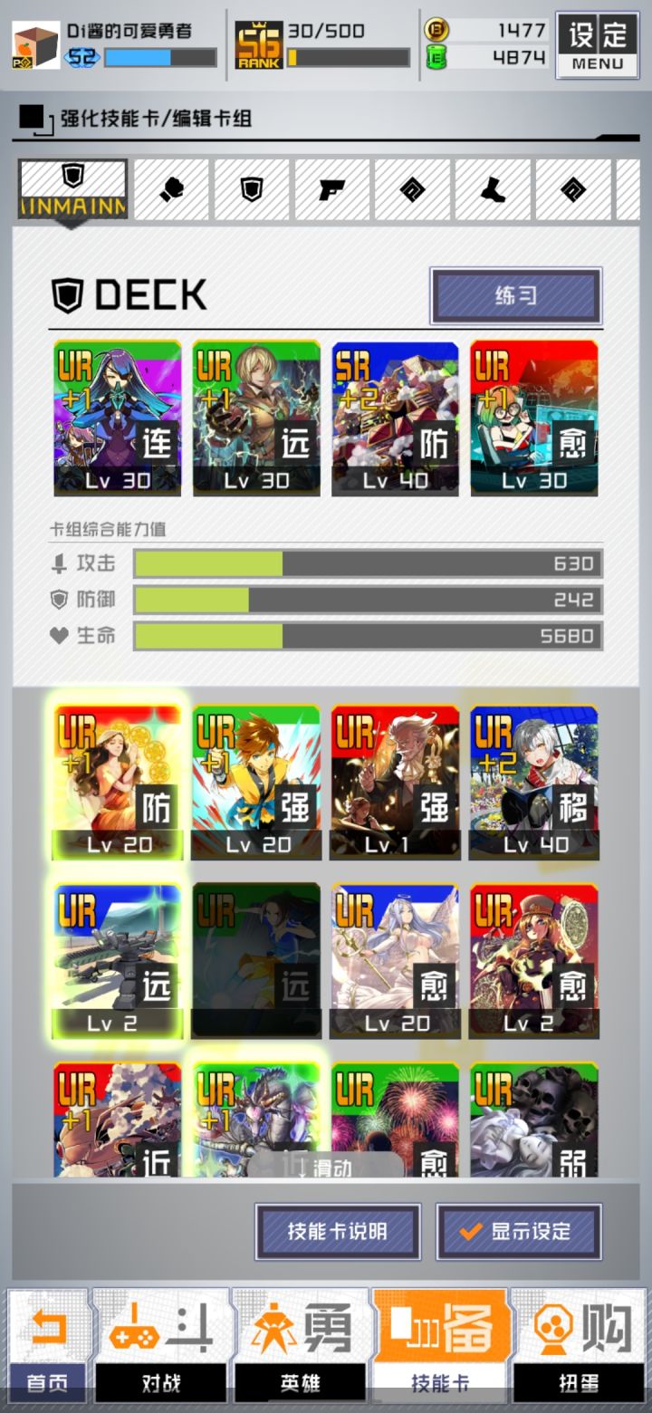 以下配卡兼顾面板数值与效果,技能卡缺少时可以使用下位技能卡代替。1.竞争狂刃忍者 -幽幽院由罗 / 乐团姬 歌姬(帝皇机神 猎人王) / 全天 / 从零开始的异世界生活这是零夜的理想标配卡组,双百盾加持下可以保证输出与生存,绿贯+双百的攻版可以给零夜带来不俗的击杀能力,没有双百50盾也可,但是面板和生存会有一定影响,用50盾是下位配置(下面卡组都是这样)。2.迅雷科学家 阿巴干 / 乐团姬